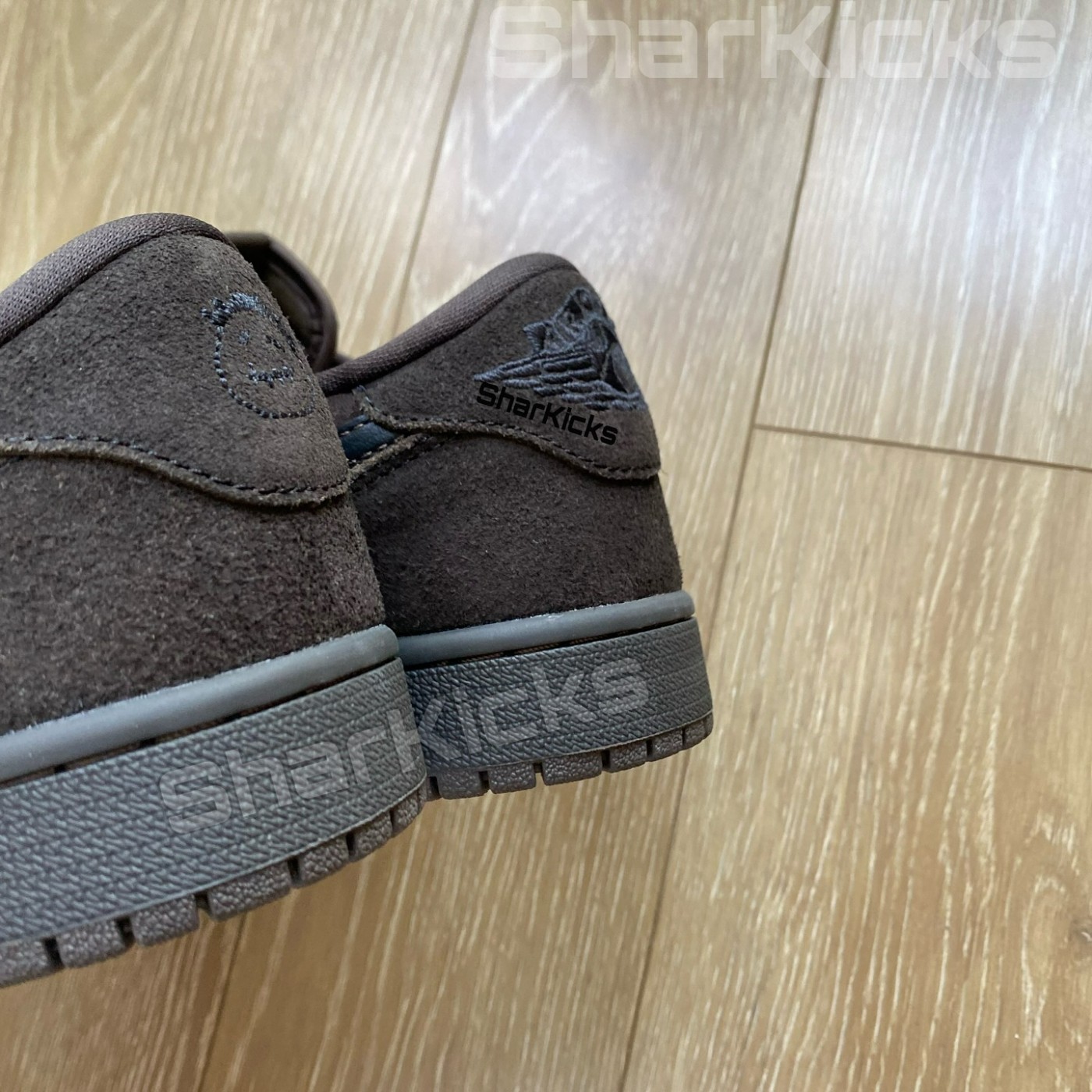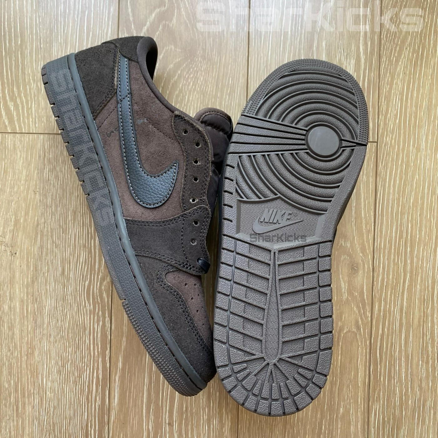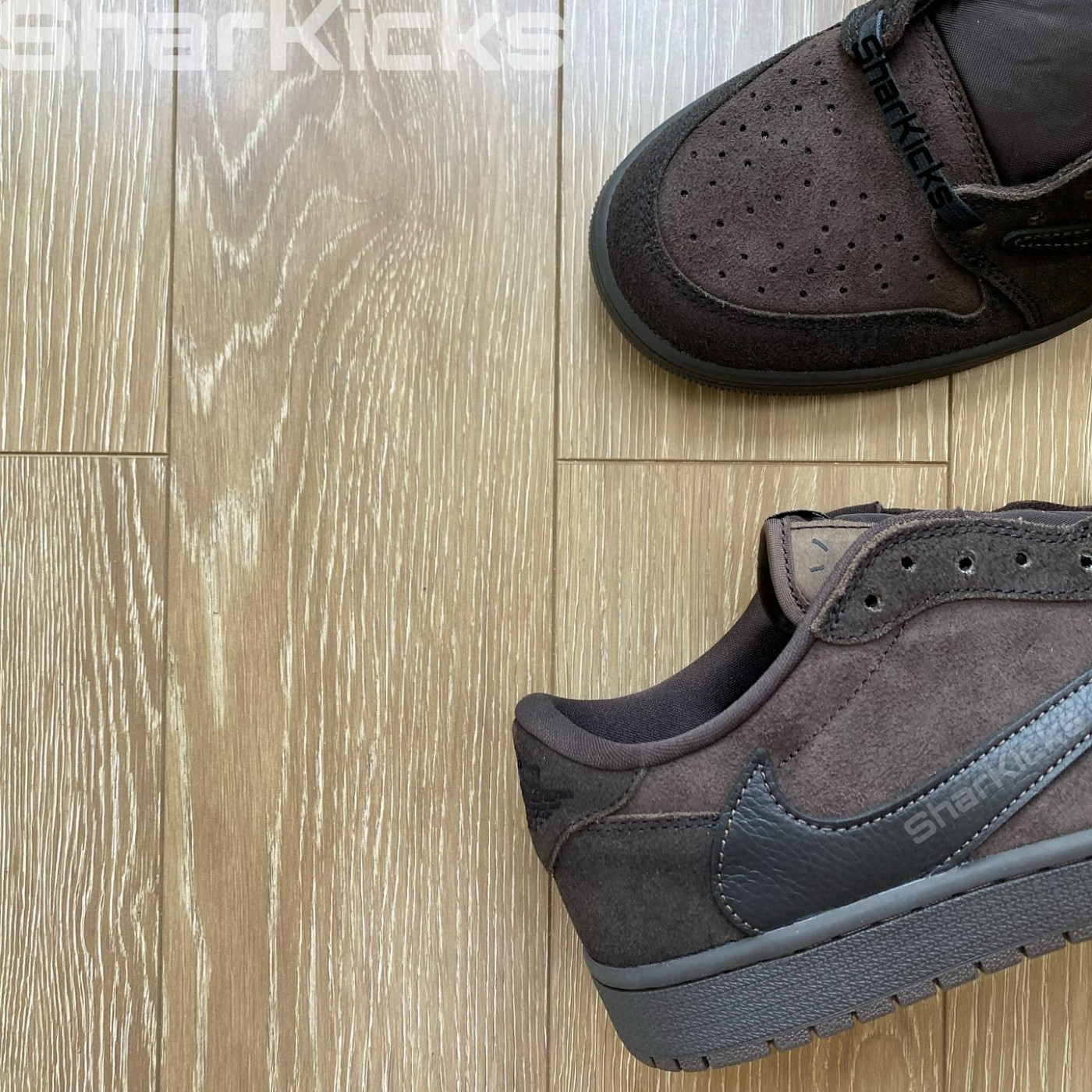 近期,暂定于 2025 年初登场的 Travis Scott x Air Jordan 1 Low OG “Velvet Brown” 迎来一组新实物。