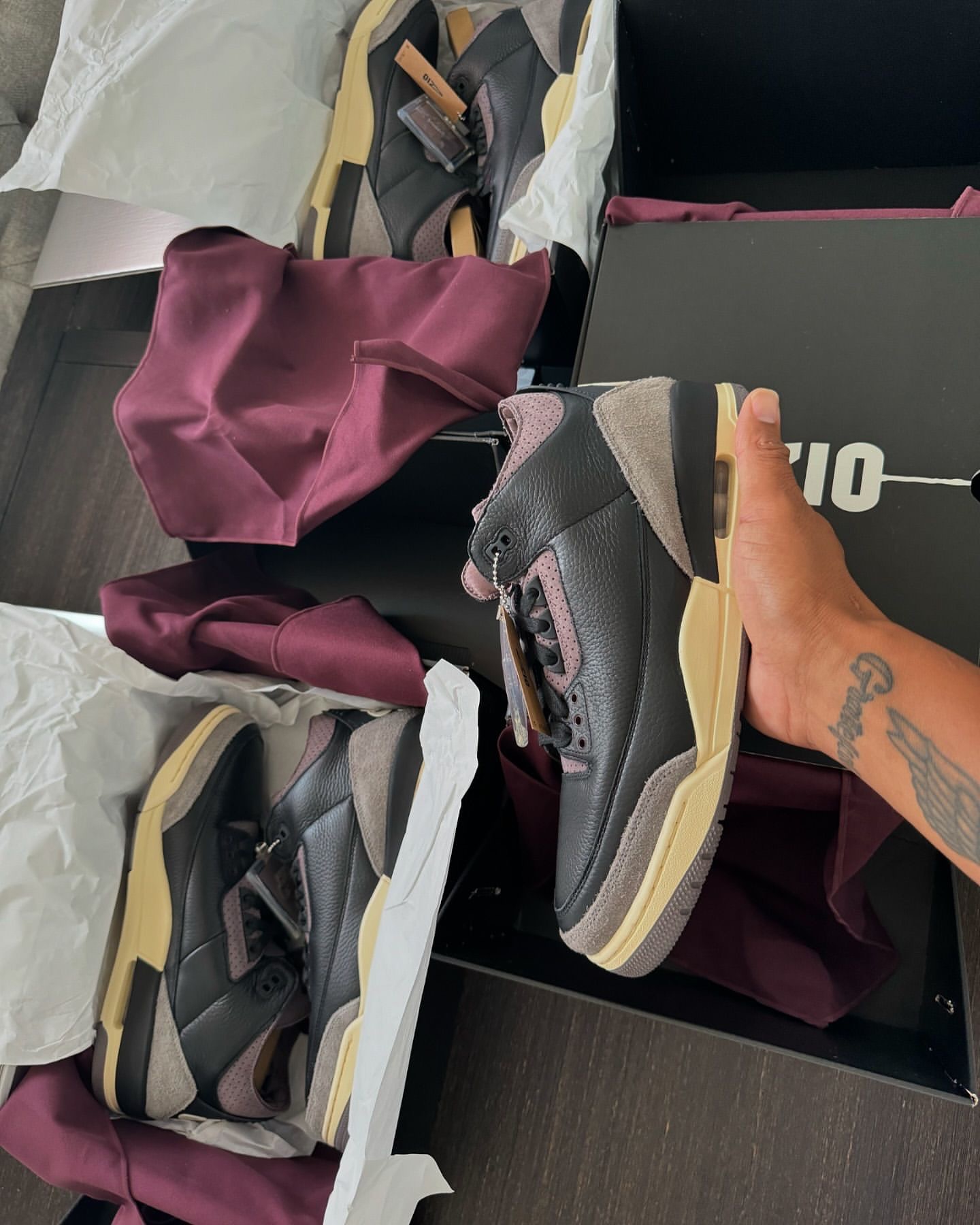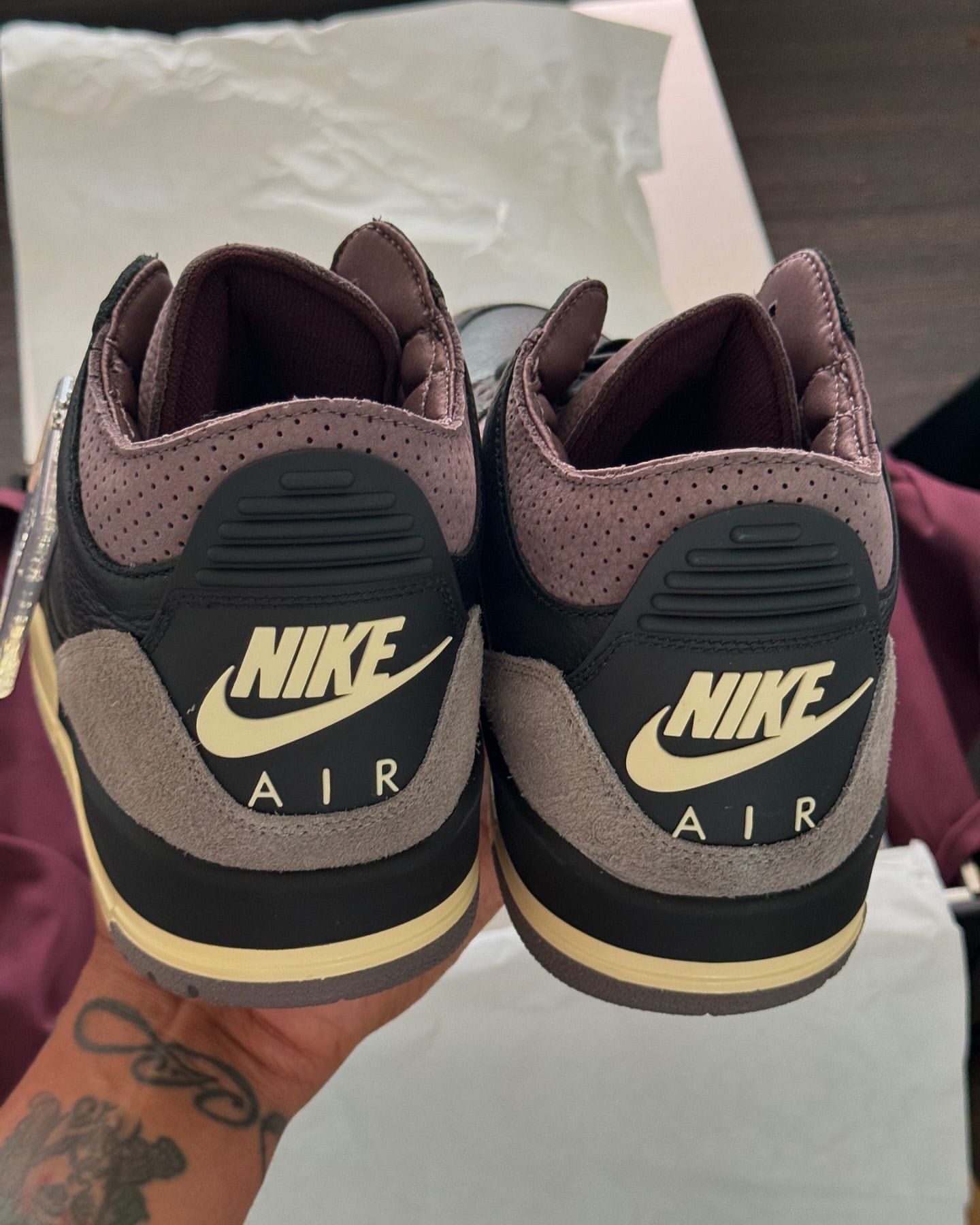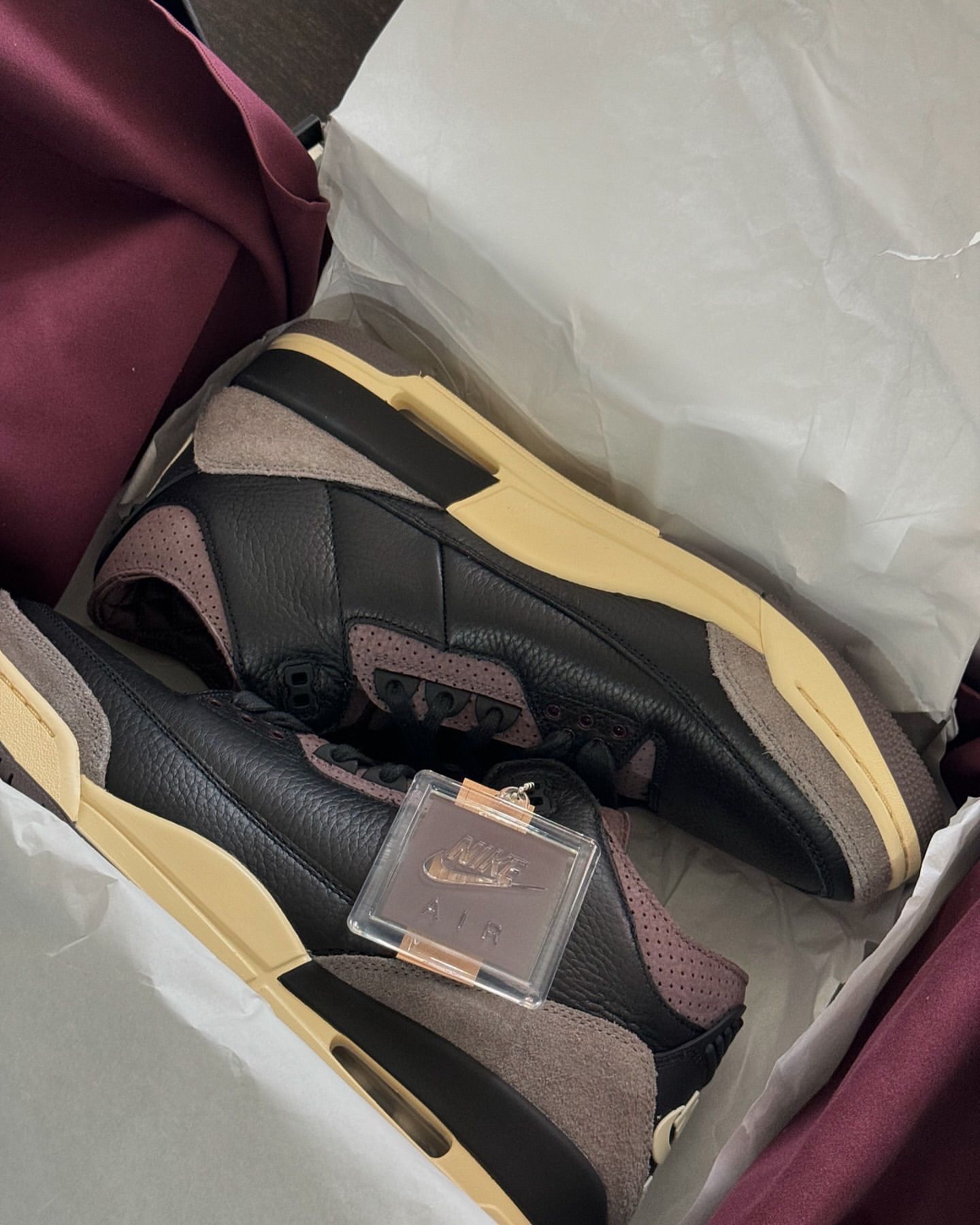 配件方面,AJ3 经典吊牌以及 A Ma Manière 特别标签都安排到位。