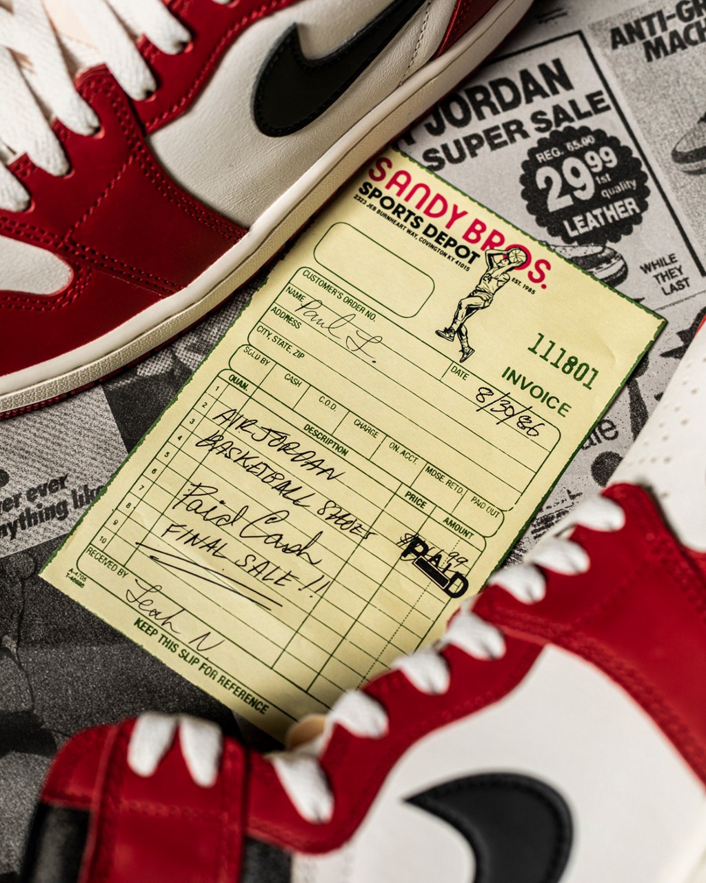 将当年乔丹的元年 AJ1 海报拿出来作为灵感,这样以来真正做到了 “回归原点”,将当年的废案还原出来,成为 OG 中的 OG。