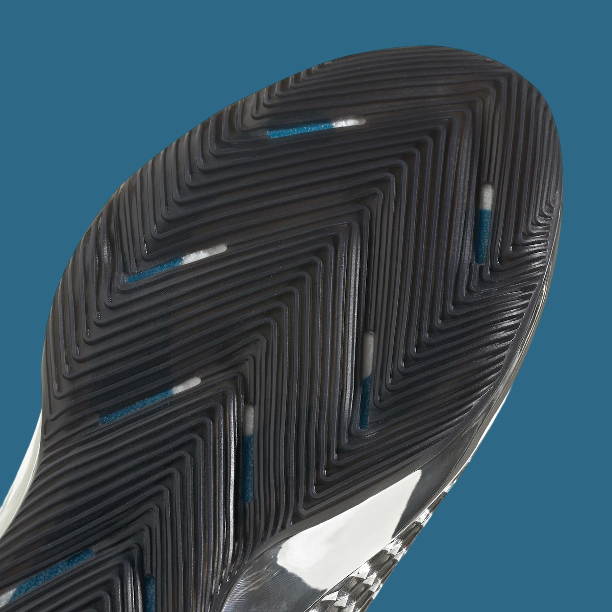 后跟与鞋舌 Logo、中底抗扭片则以蓝色点缀,视觉平衡拿捏的恰到好处,让人格外期待!
