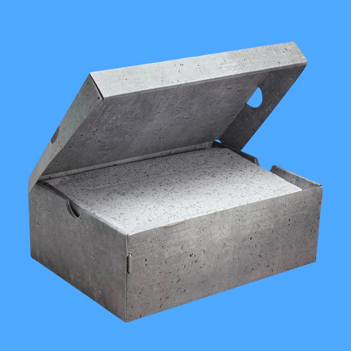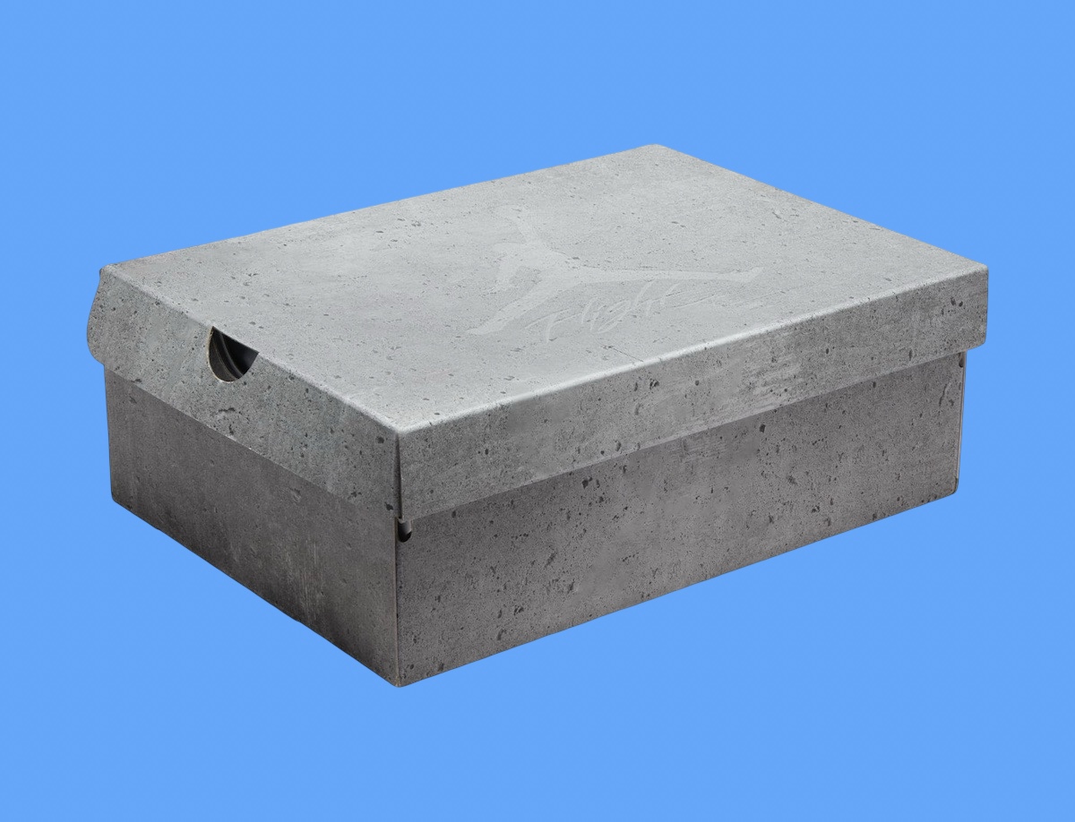 最绝的当属这次精心设计的鞋盒,看上去仿佛真的由水泥板打造而成,与 “Wet Cement” 主题完美契合。