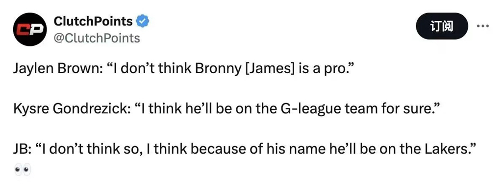 甚至场边观战的凯尔特人球星杰伦·布朗都直言:“我不认为布朗尼达到了职业水准”。