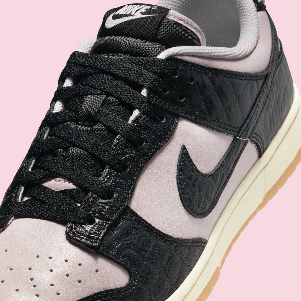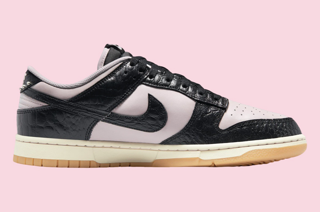 近日,Nike Dunk Low 迎来一双超高规格的新配色! 整体呈现经典的熊猫配色,不过填充部分由淡淡的粉色替换了白色。 框架部分则以黑色鳄鱼纹理皮质覆盖,带来强烈的奢华气息。 后跟还有铆钉细节,在以往的配色中都很少见这种设计。 最后以生胶外底收尾,释放更浓郁的复古味道。 据悉,全新 Nike Dunk Low “Pink/Black Croc” 将于今年秋季登场,感兴趣的朋友不妨保持关注。
