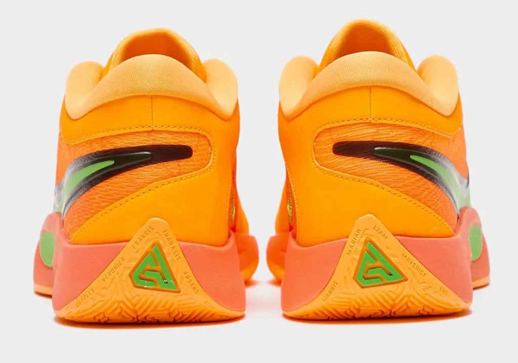 整体外观相当具有活力,大面积亮橙色搭配绿色 Swoosh,带来浓浓的夏日热带风情。