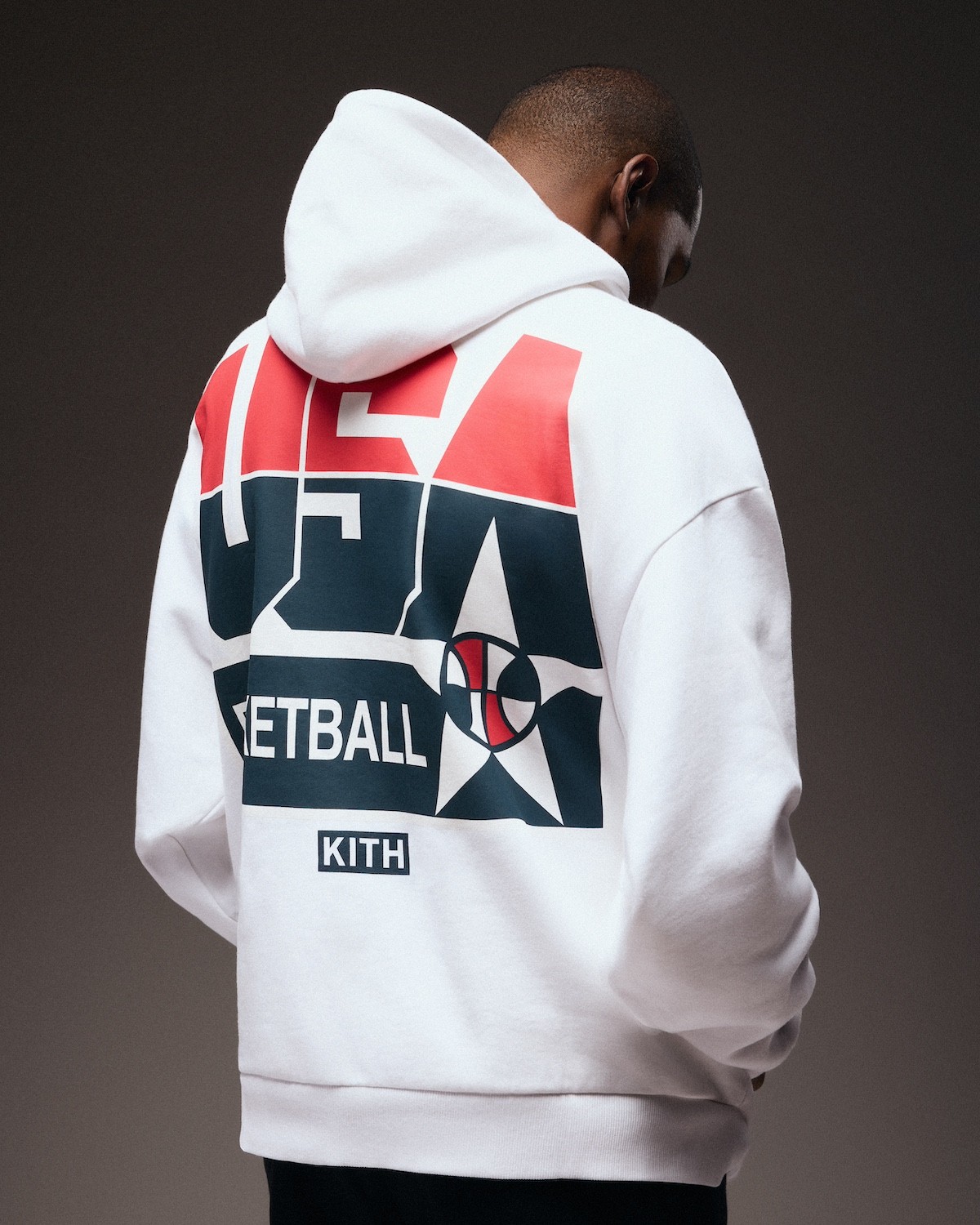 KITH for USA Basketball 2024 系列包括夹克、圆领衫、连帽衫、复古水洗 T 恤、运动裤和短裤。