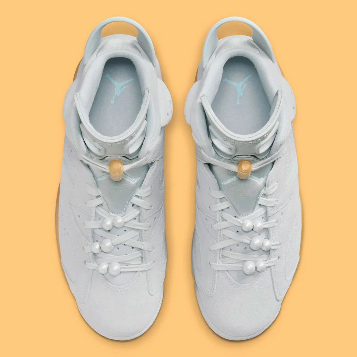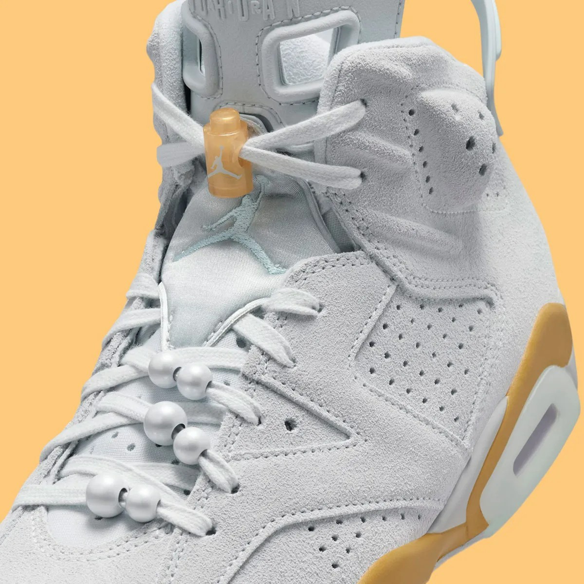 细节方面可以看到鞋带上有珍珠装饰,不难看出这款配色是专门针对女生推出的。