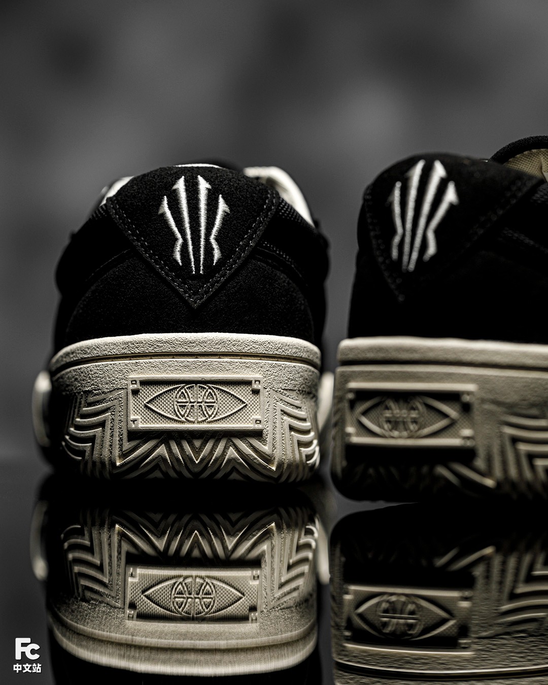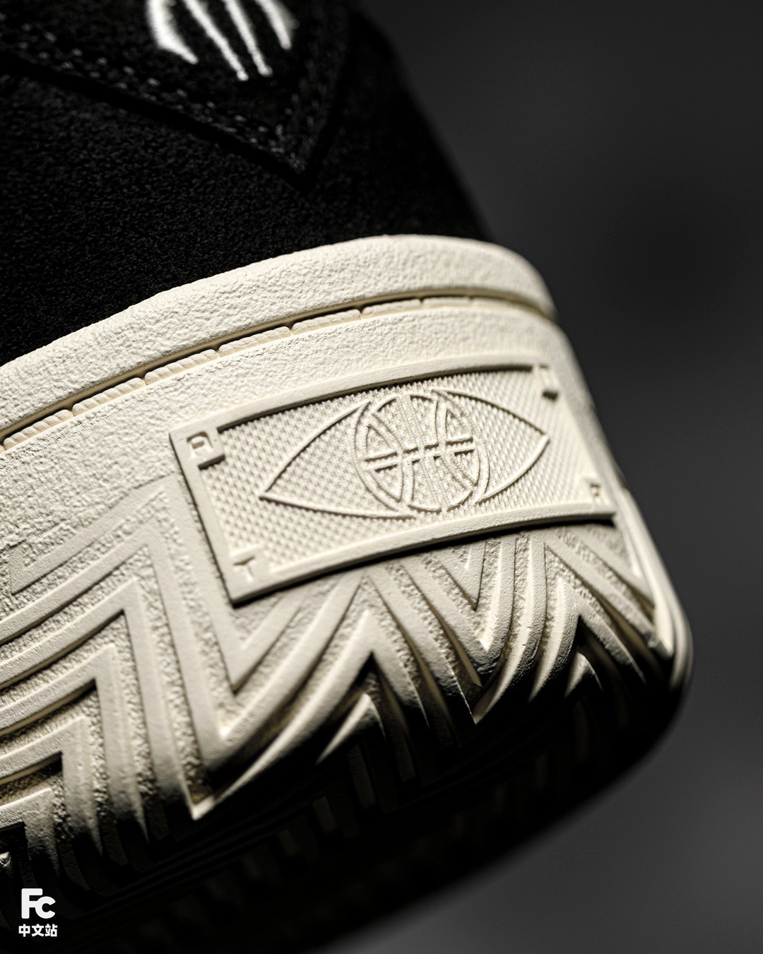 来到后跟,上方是精致的欧文之盾刺绣,下方则以篮球为灵感,结合欧文最爱的 “全视之眼” 创造出的图案。