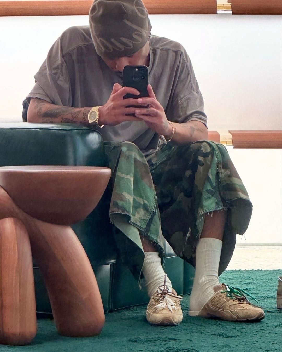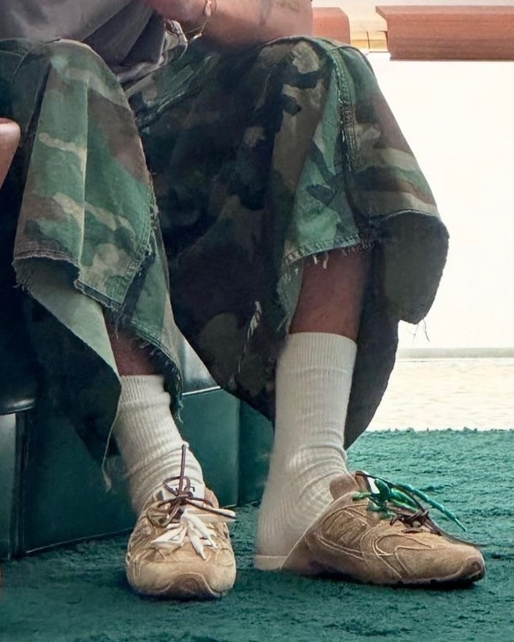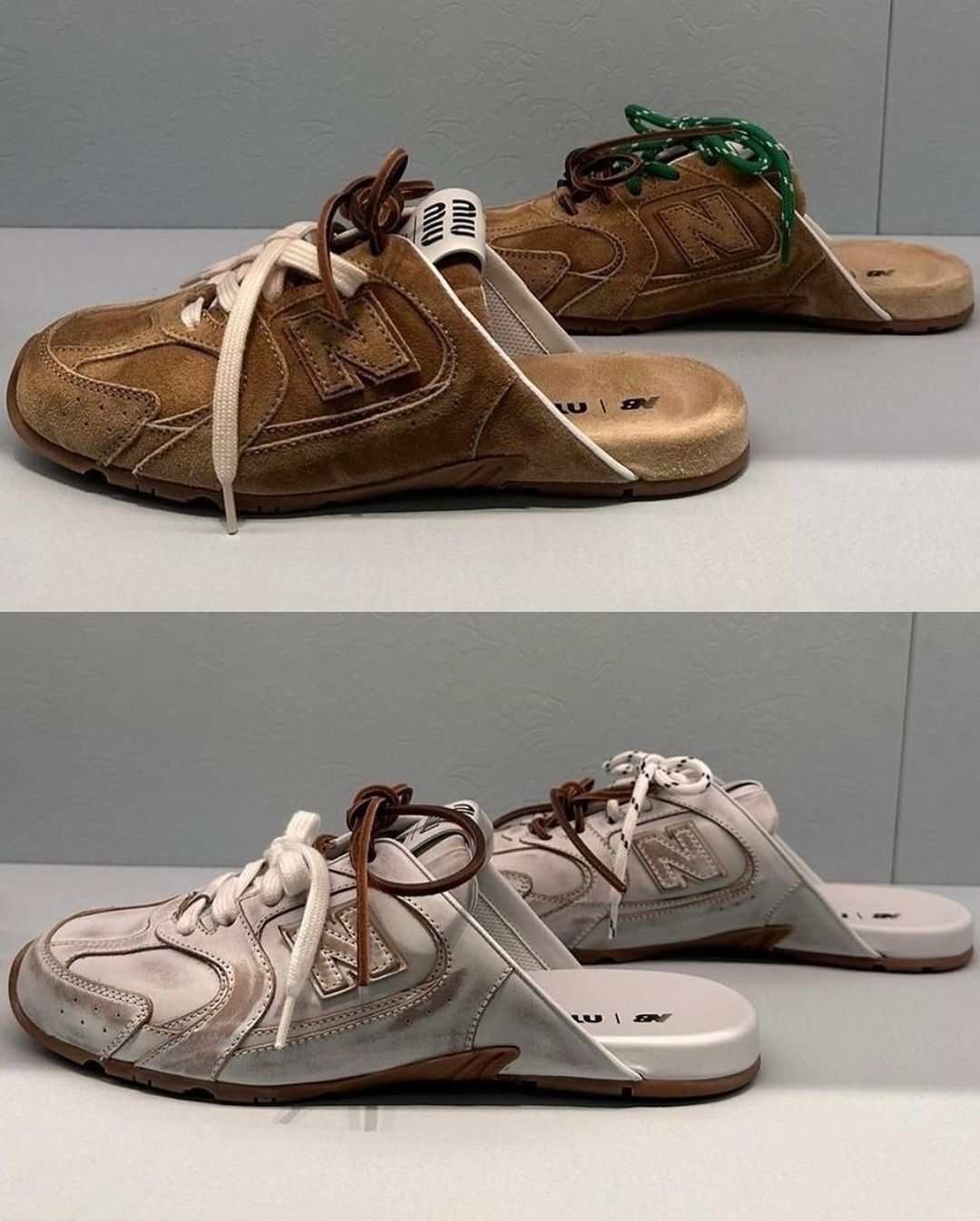 最近 RHUDE 的主理人 Rhuigi Villaseñor 上脚了 Miu Miu x New Balance 530 SL Mules。