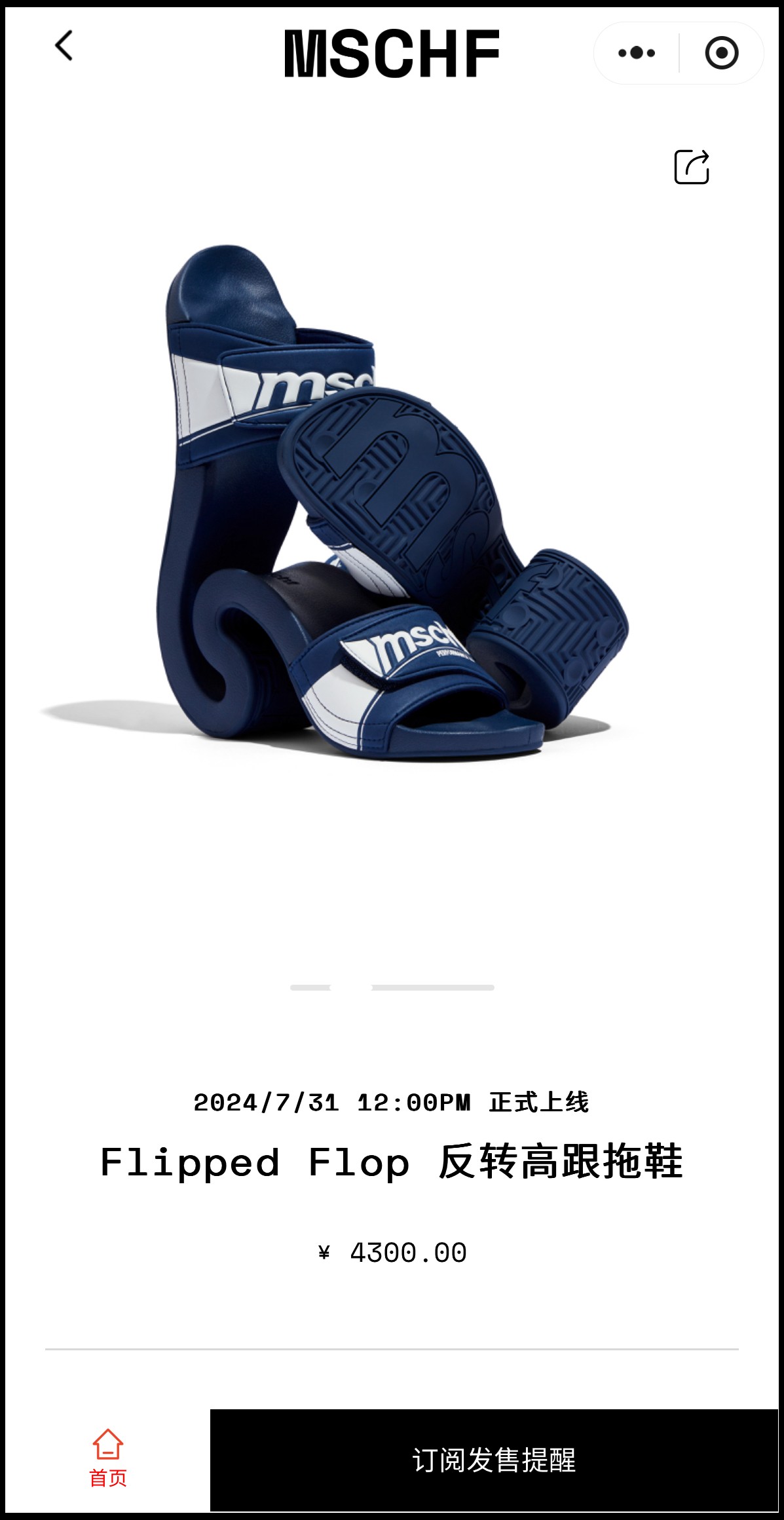 据悉,全新 MSCHF Flipped Flop 将于 7 月 31 日中午 12 点正式登场,目前国区 MSCHF 小程序已经上架预告。
