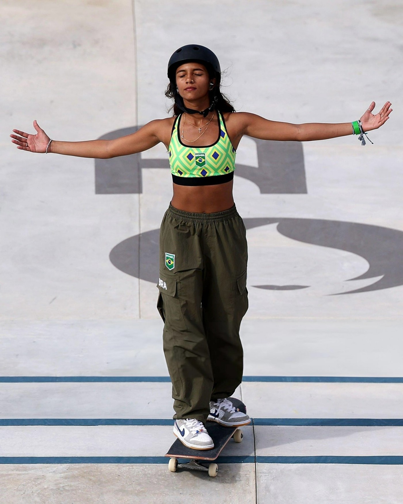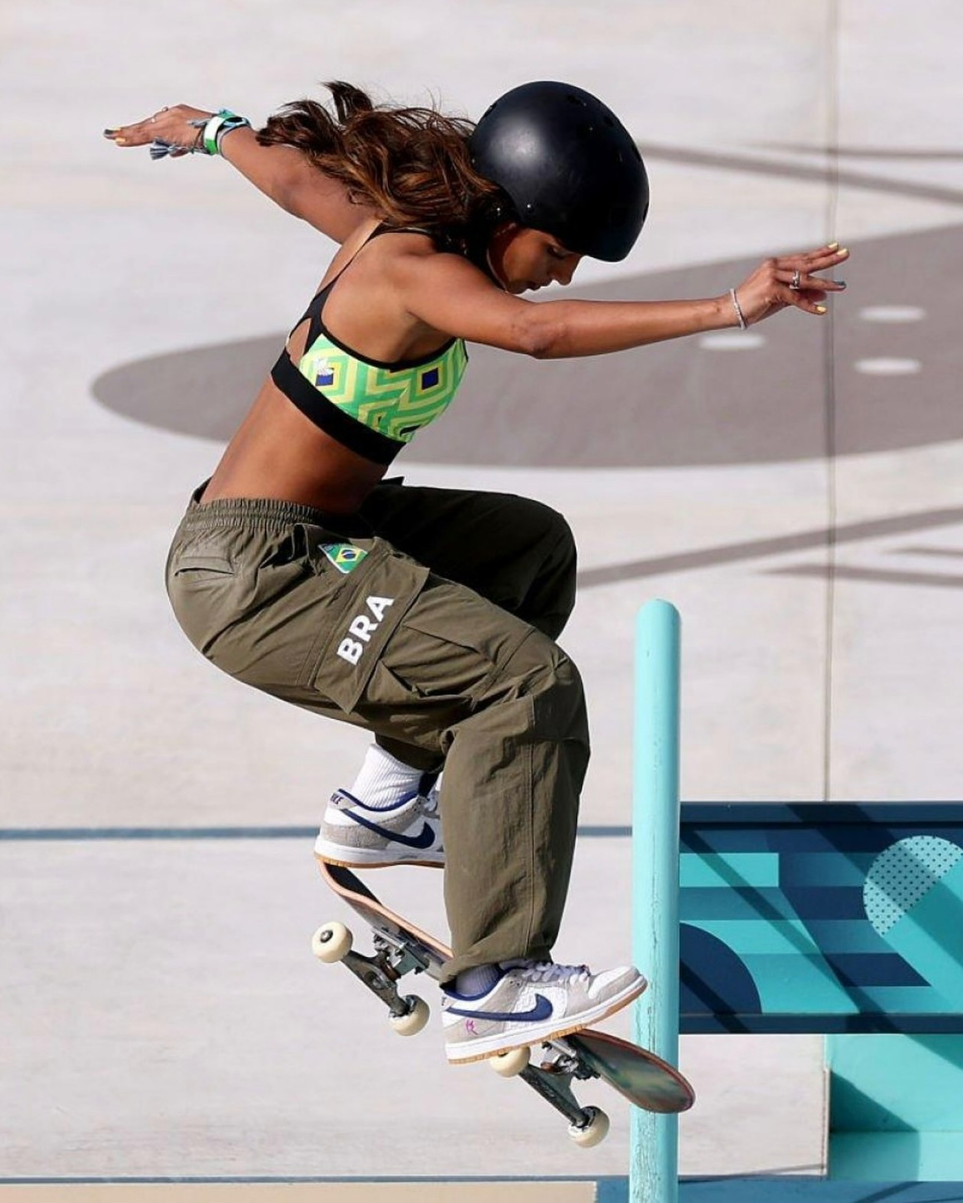 是为年仅 16 岁的滑手 Raysa Leal 打造的联名鞋,刚刚在巴黎奥运会上这位巴西小仙女就穿这双鞋赢得了铜牌。