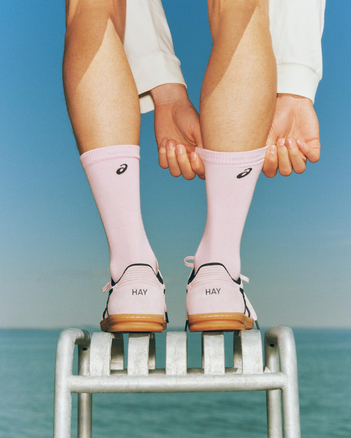 近日,HAY 又玩起了跨界联名,携手亚瑟士打造了全新复古「薄底鞋」SKYHAND OG。