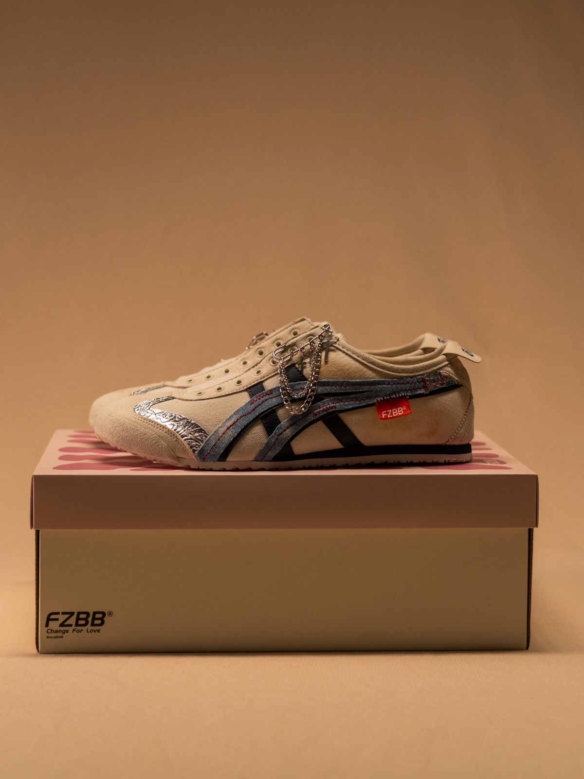 今年恰逢七夕,FZBB 基于多双经典鞋款,带来 “新中式” 的定制呈现,不仅有定制球鞋常见的 AJ1 和 Dunk 鞋型,更有颇受欢迎的 “薄底鞋” 鬼冢虎 Mexico 66。