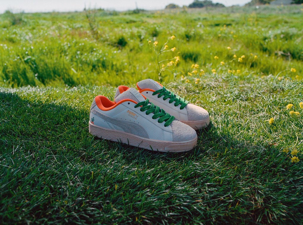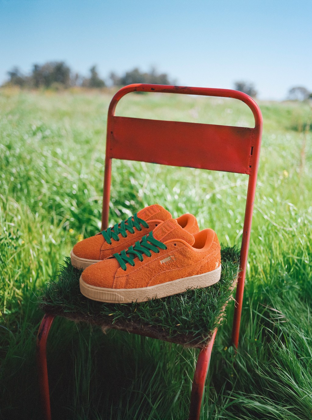鞋款方面,PUMA 与 Carrots 对 Suede XL 鞋款进行了重塑,推出橙色与米白色款式。