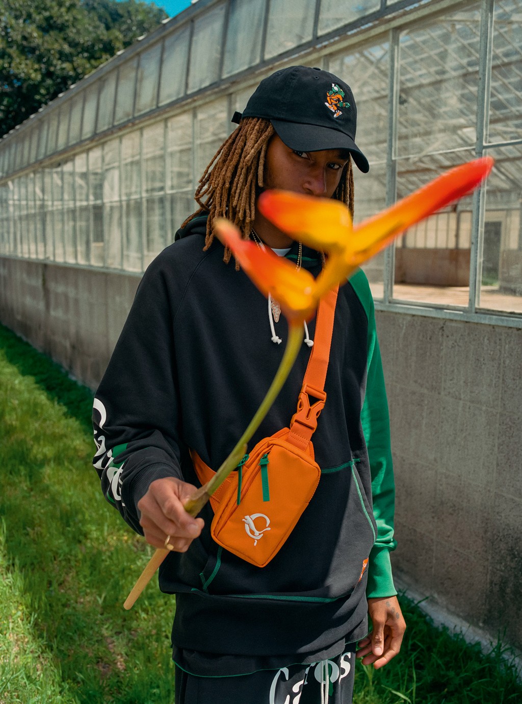 配饰方面,腰包采用耐用的防撕裂材质,提供橙色与黑色两款配色,并配有对比色拉链和 PUMA x Carrots 联名标志。