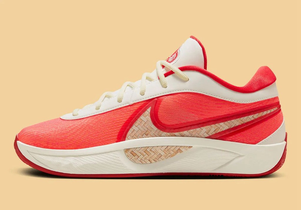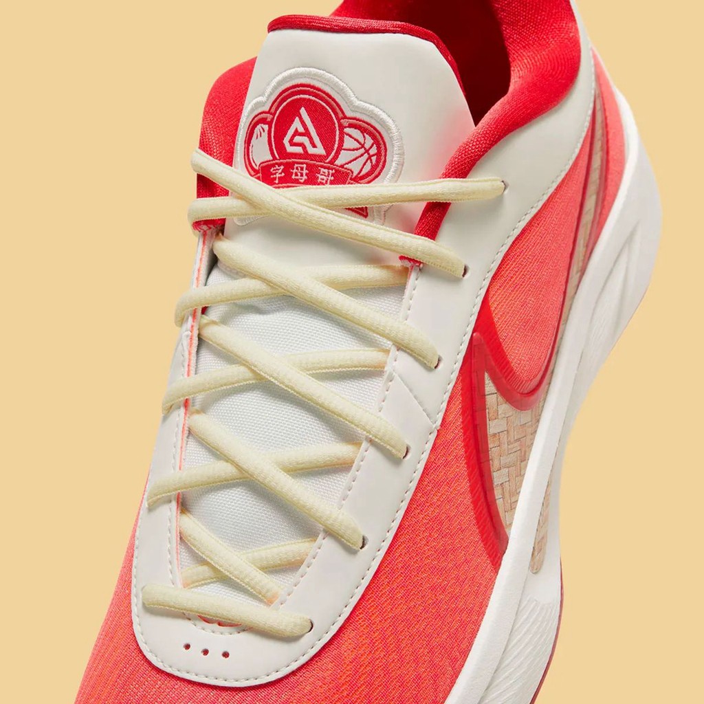 最具辨识度的 Swoosh 部分以竹条编织纹理呈现,灵感源自叉烧包的蒸笼,这也是字母哥最爱的中国美食。