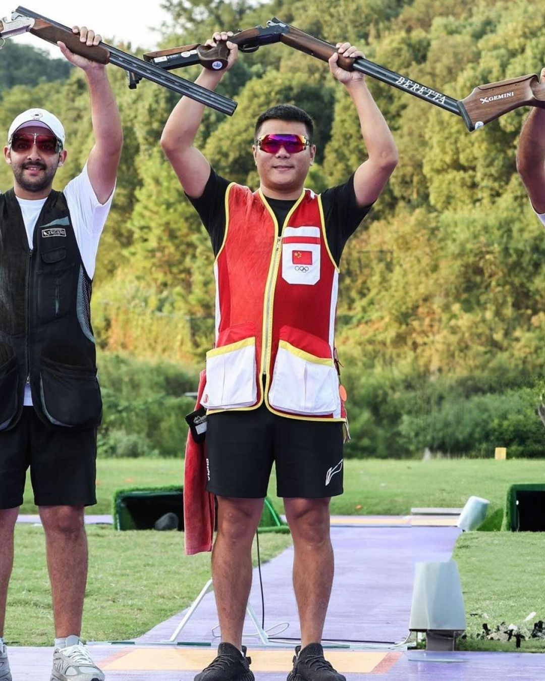 2024 巴黎奥运会男子多向飞碟决赛中,中国选手齐迎获得银牌。