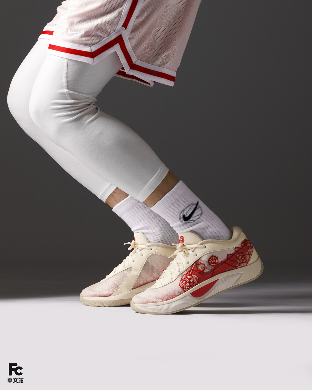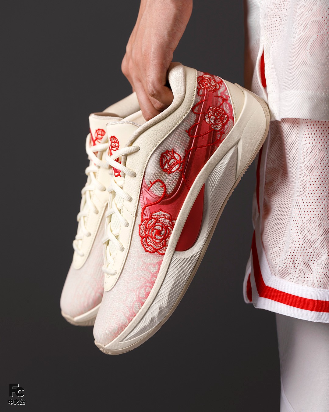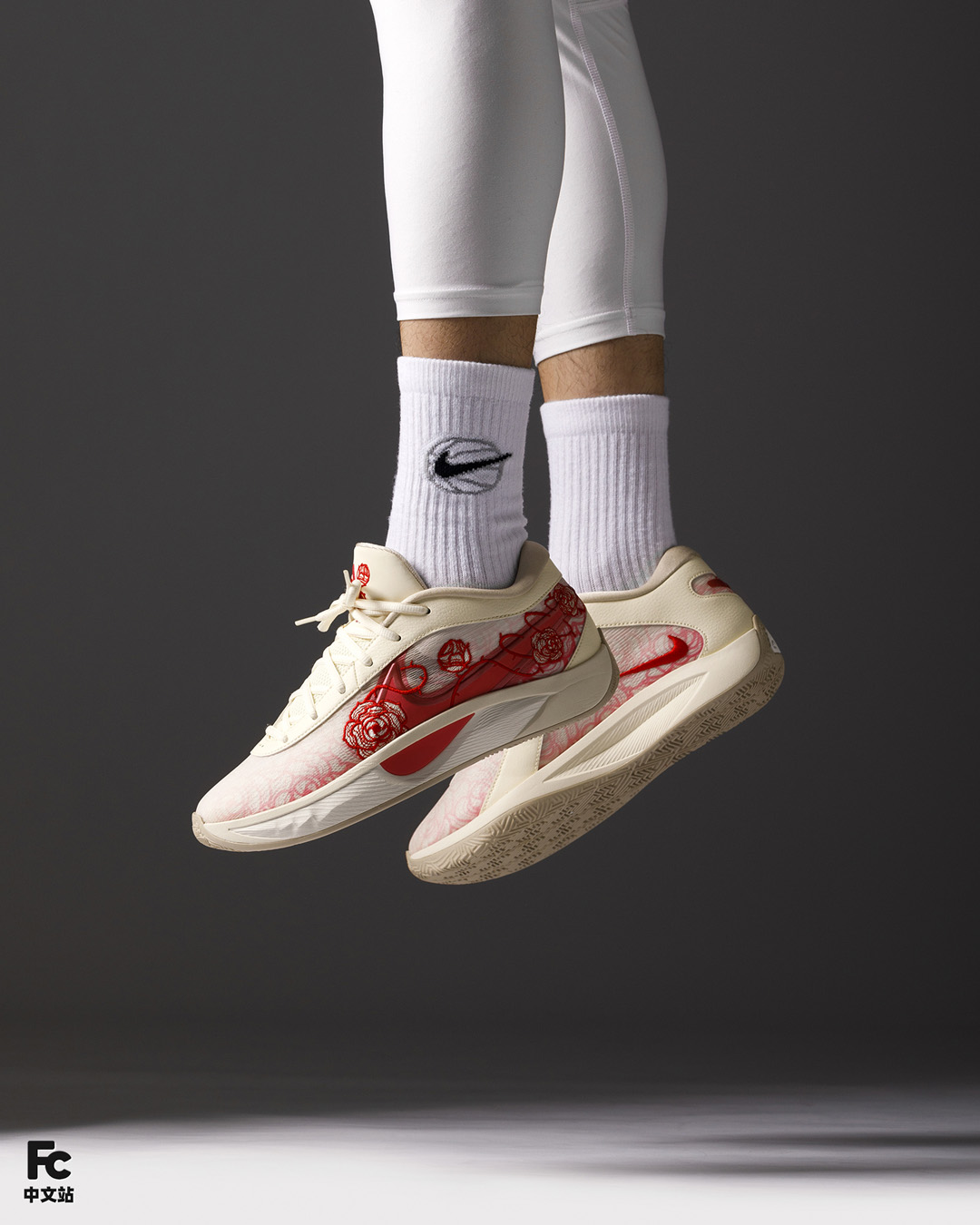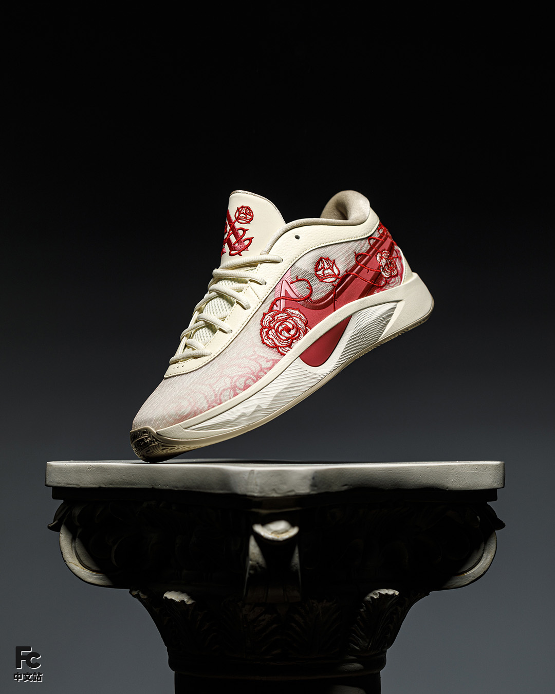 整双鞋以玫瑰为主要灵感,玫瑰花是字母哥父亲最爱的花卉,同时也象征着爱,环绕 Swoosh 的一圈圈荆棘,仿佛在诉说着阿德托昆博家族一路以来的艰苦与不易。