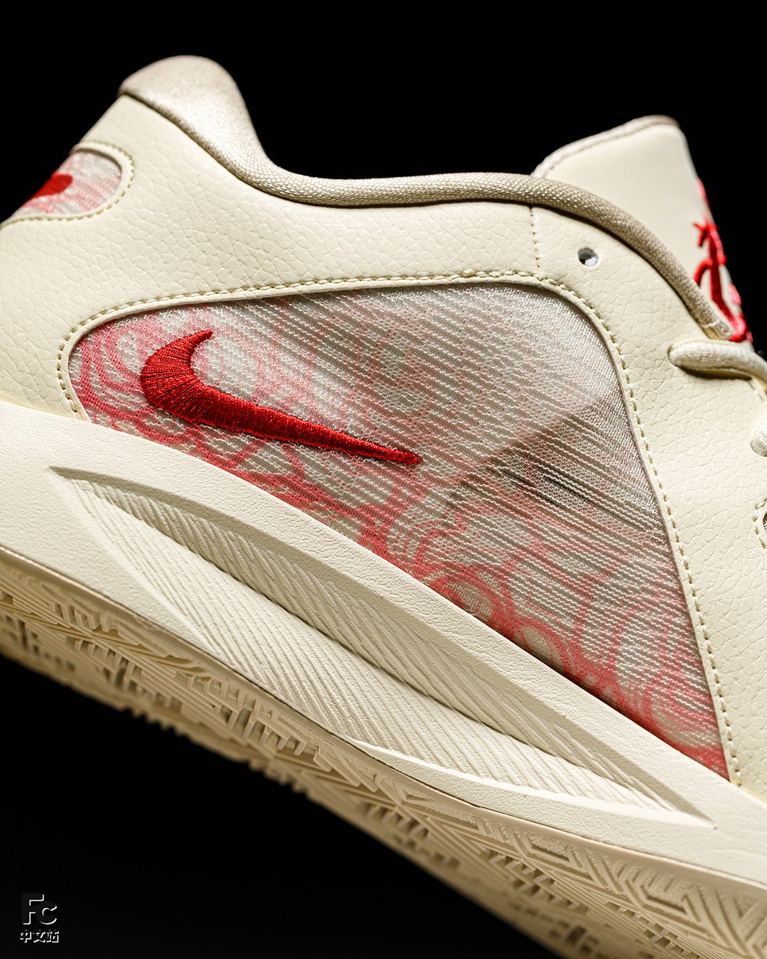 鞋舌也采用了相同主题,在红色字母哥个人 Logo 上环绕荆棘玫瑰,精致而又充满艺术感。