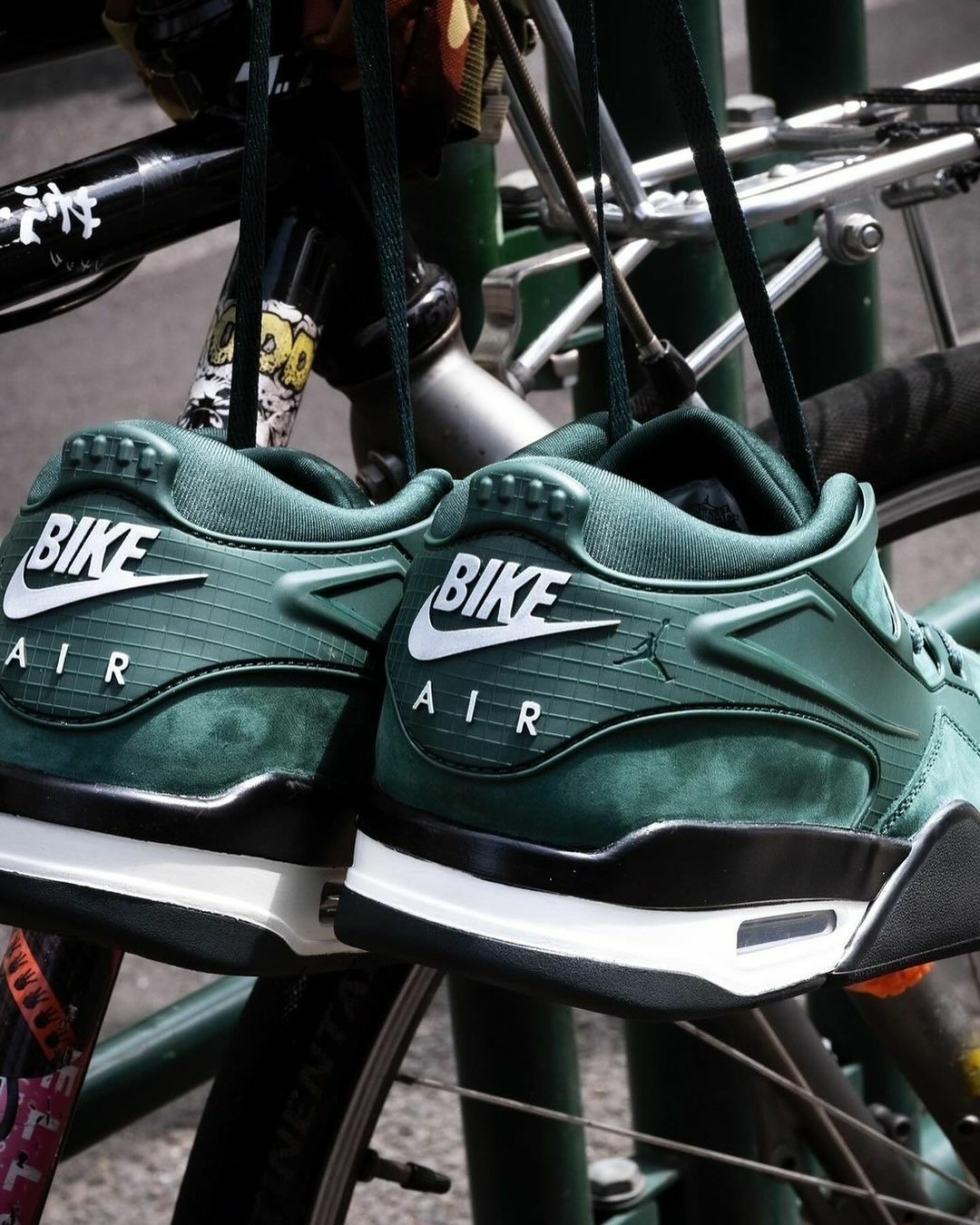 光泽感内衬 + 鞋身金属绿的组合,在一众 Air Jordan 4 中显得尤为独特。