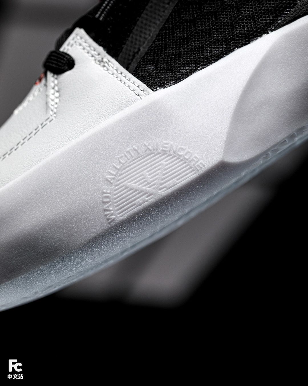 白色中底点缀鞋款全称,半个韦德经典米字 Logo 若隐若现。