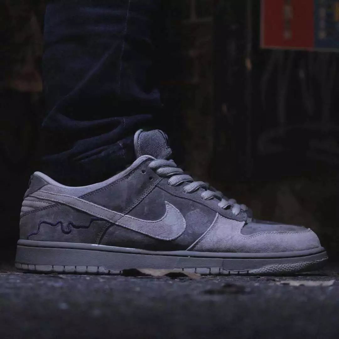 脚上踩的这双基本可以断定是 “四大城市” 限定之一的 Nike SB Dunk Low London。