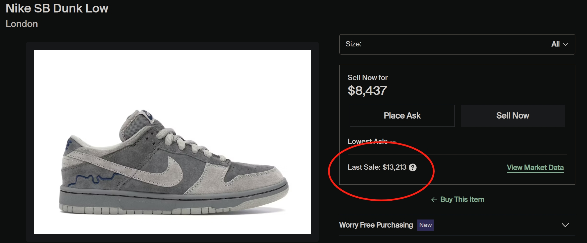 目前二级市场一鞋难求,最近一次的成交价高达一万三千美元,将近十万人民币。