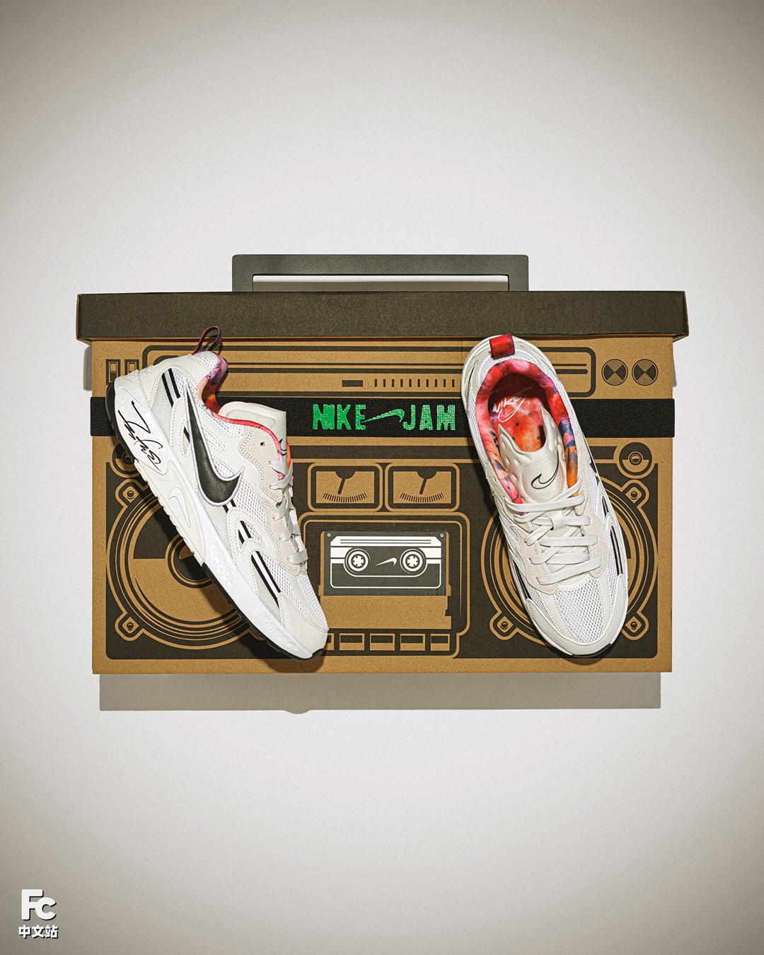 翻开内衬,是 Futura 的涂鸦作品,与鞋款设计相呼应。