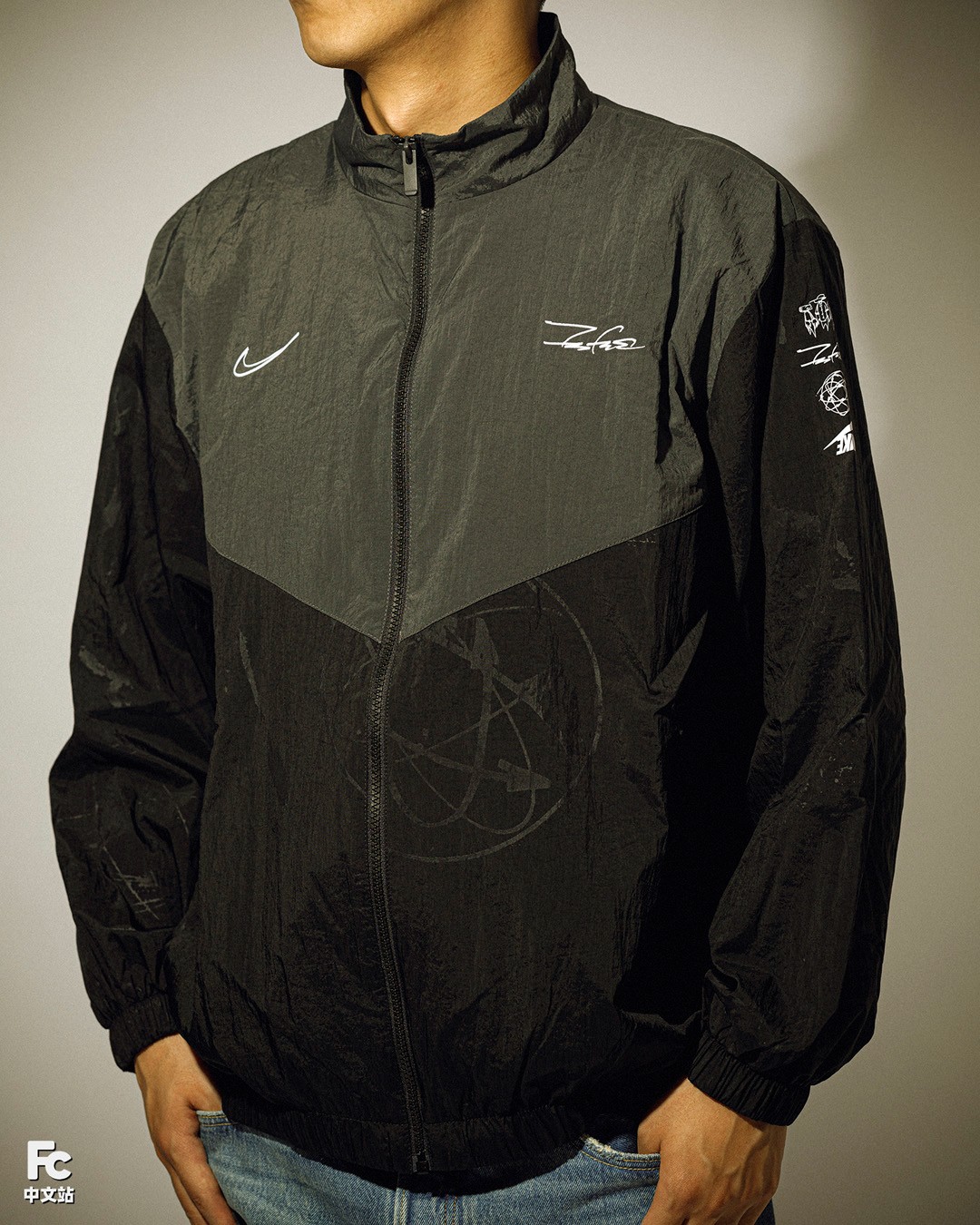 作为里程碑般的新鞋,这次 Nike 还同 Futura 推出了配套联名夹克,经典的 V 字拼色极具辨识度。