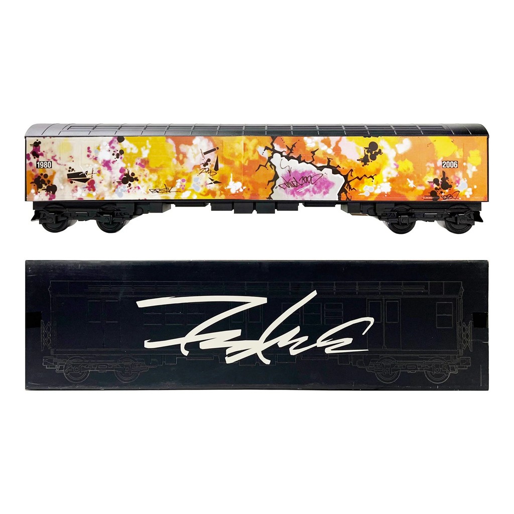 这个图案其实也大有来头,是 Futura 对他自己经典作品《Break Train》的重新诠释。
