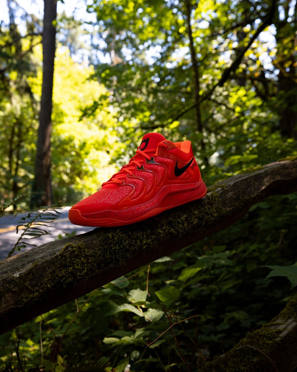 第二双 KD17,以草莓、树莓等浆果为主题,红色装扮搭配黑色泼墨,仿佛诱人果酱般让人垂涎欲滴。