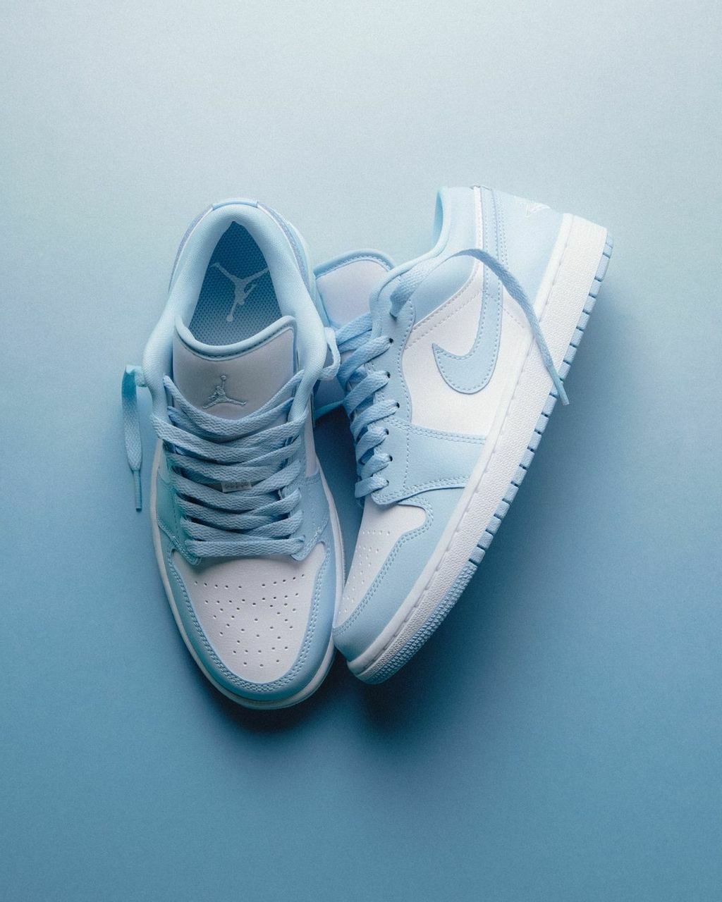 相信不少小伙伴都注意到了其中的一双全新「冰蓝 AJ4」,神仙颜值完全可以用 “冰清玉洁” 来形容。