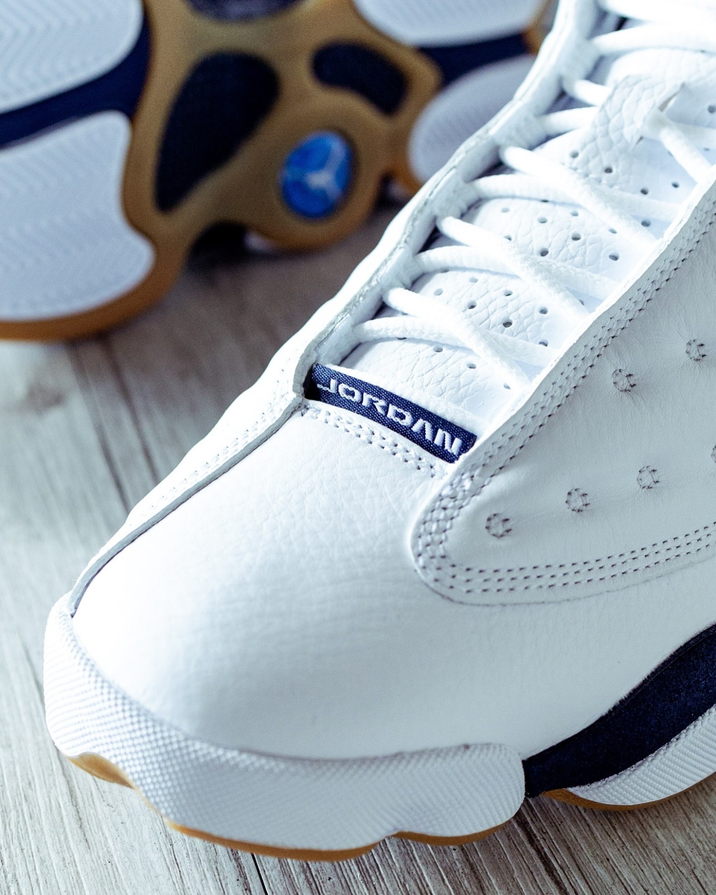 配色采用了在 AJ13 上十分讨喜的白蓝装扮,应该会令不少小伙伴想起经典的「GIGI」或是此前的「法国蓝」配色。