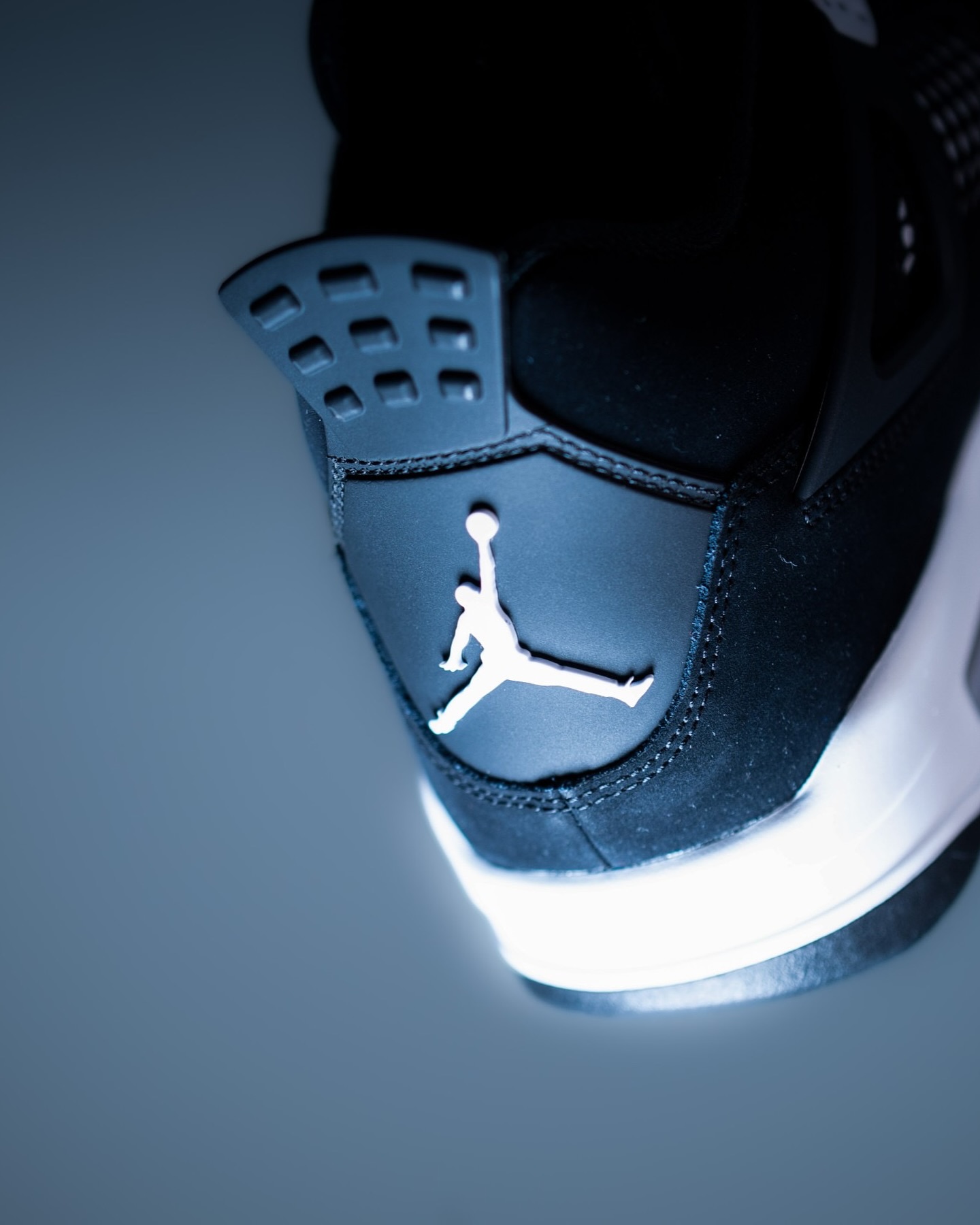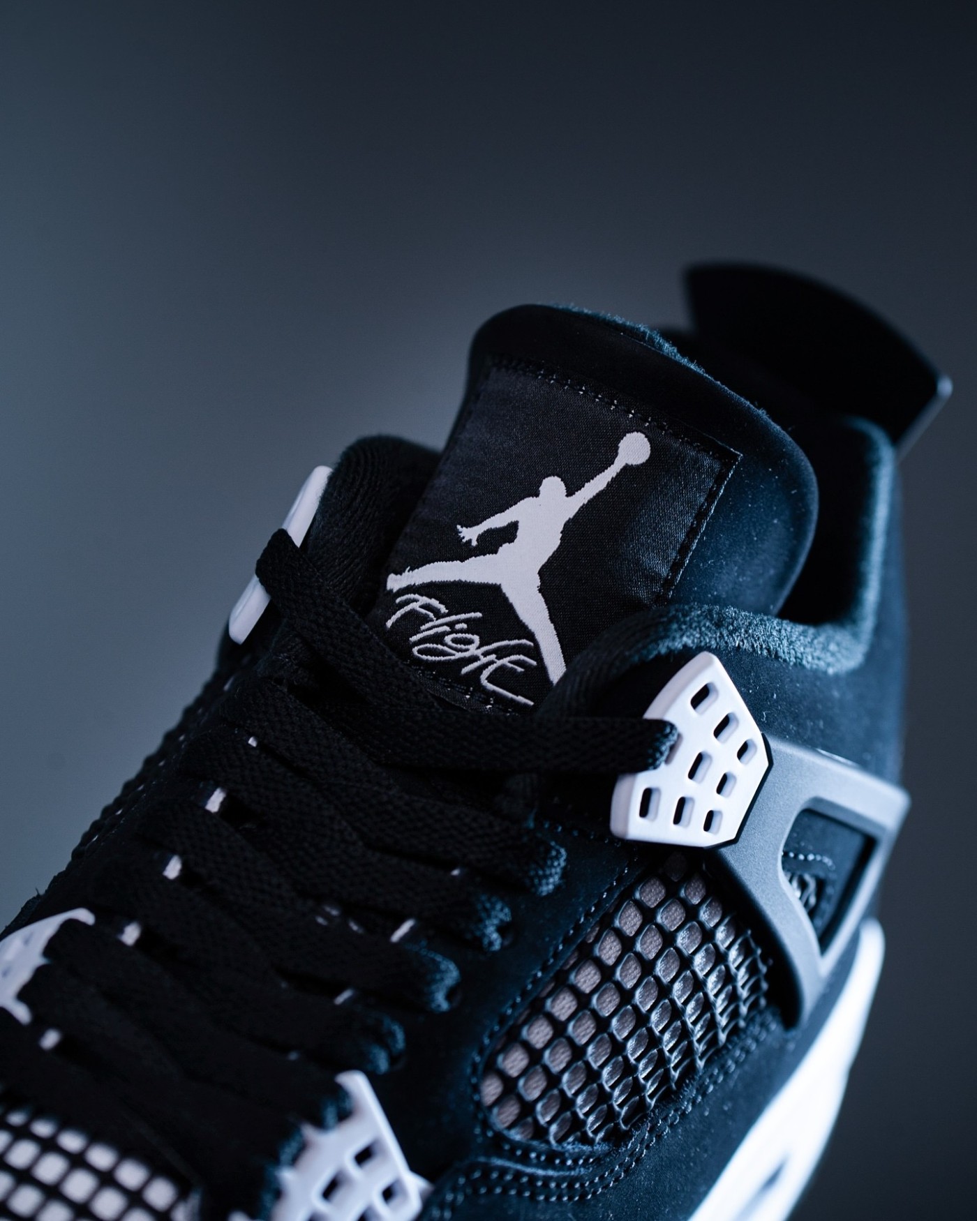 简约的黑白撞色,配合经典的牛巴革磨砂皮鞋面,还是 AJ4 最经典的样貌,颜值方面很难找到 “硬伤”。