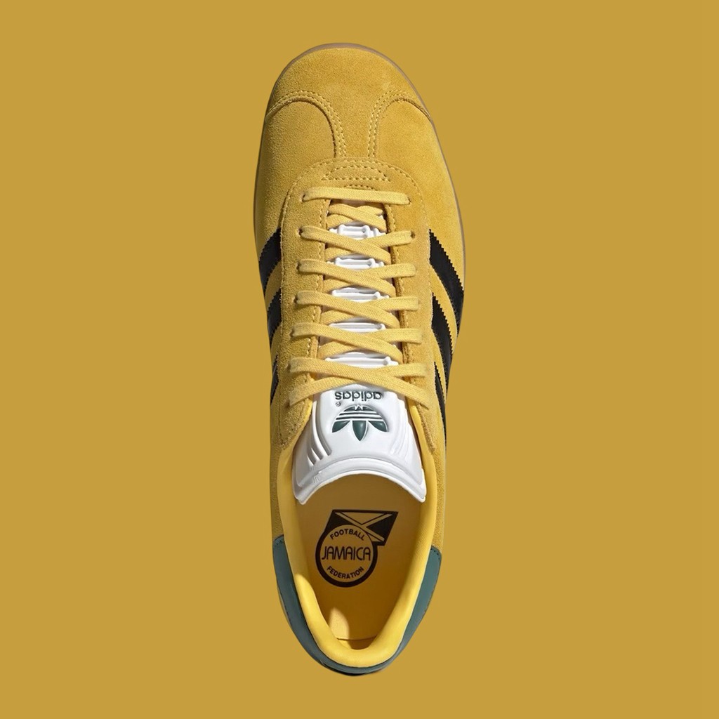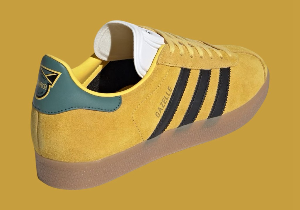来到 2024 年,Gazelle 成为了三叶草最主推的鞋型,不光各种联名,新配色也是层出不穷。 比如近日这双牙买加配色,以牙买加的足球传统为灵感,带来令人眼前一亮的限定配色。 姜黄色麂皮鞋面搭配绿色细节,还原牙买加经典国旗配色。 后跟点缀牙买加足球队 Logo,彰显配色身份。 据悉,全新 adidas Originals Gazelle “Jamaica” 将于 8 月 22 日登场。