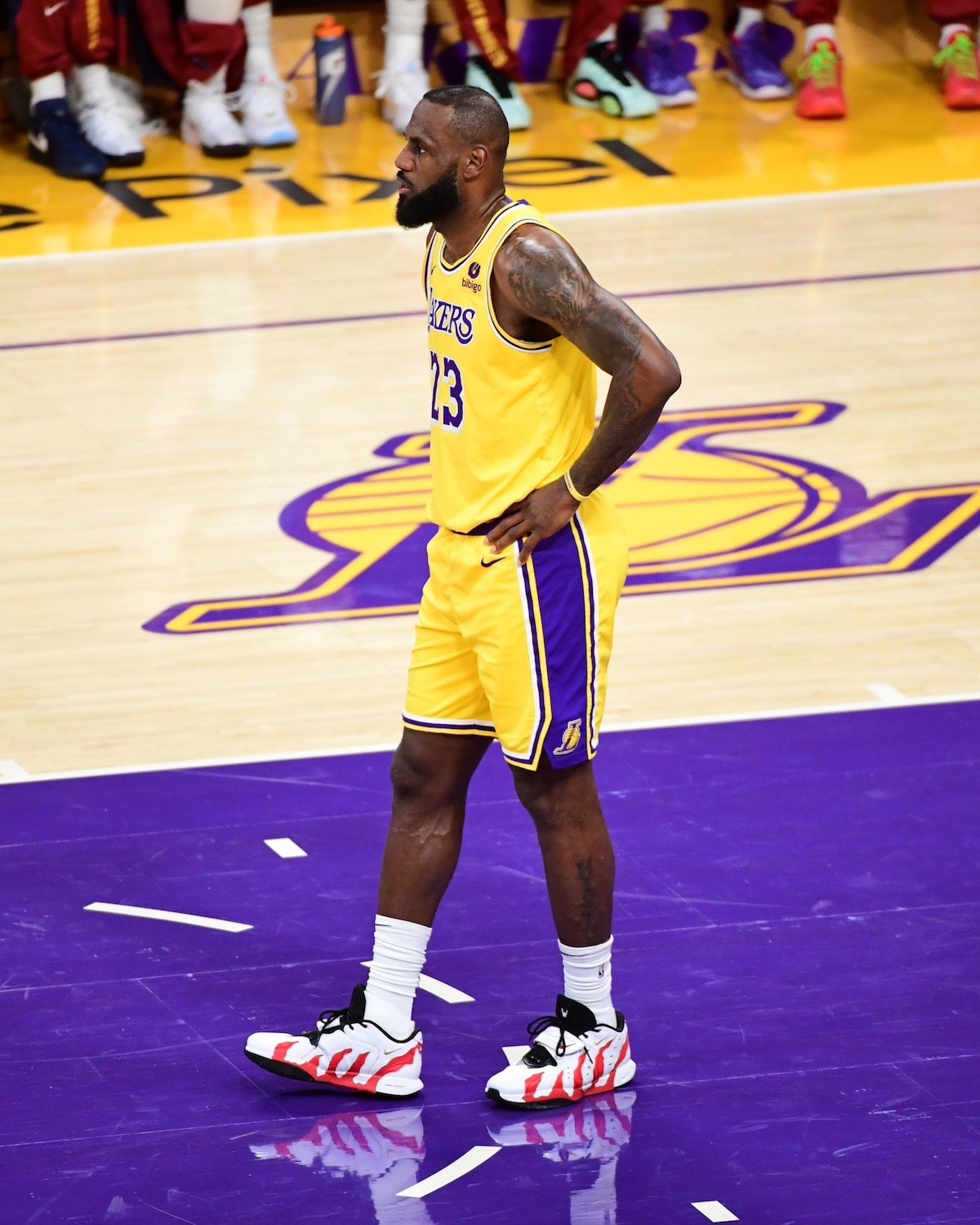 在今年上半年 NBA 季后赛洛杉矶湖人对阵丹佛掘金的第三场比赛中,勒布朗·詹姆斯脚上的 Nike LeBron 21 “Diamond Turf” PE,造型灵感就来源于 Nike 为迪昂·桑德斯打造的 Nike Air DT Max 96。