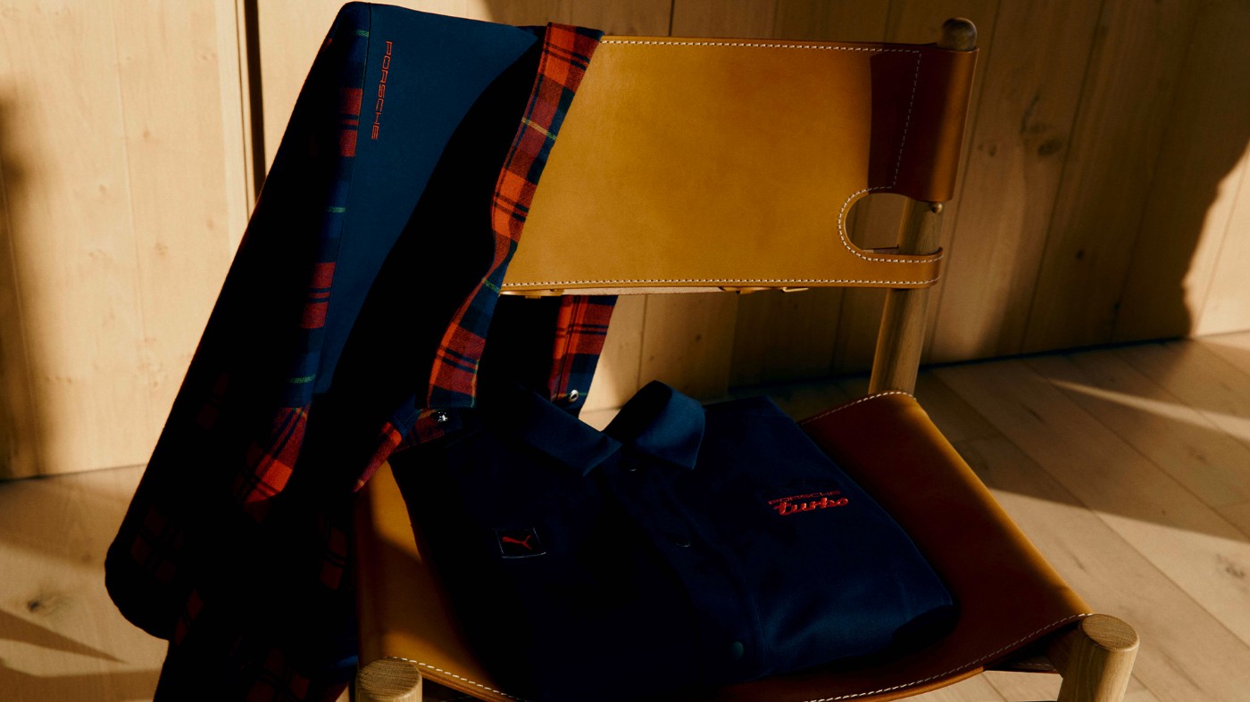 在 PUMA x PORSCHE 全新联名赛车系列中,以 1974 年首款保时捷 911 Turbo 内饰为灵感设计了斜纹布夹克、法兰绒衬衫。
