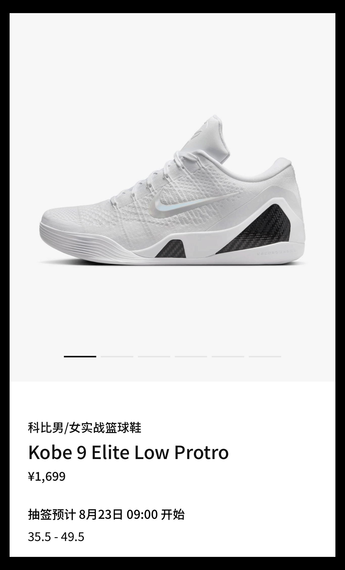 由于当年 Kobe 9 精英版原本定价就比传统科比战靴的 1399 要高(元年低帮精英 1599/高帮精英1699/低帮 EM 版本 1399),加之本次 Protro 还未正式发售,目前市场行情确实不便宜。