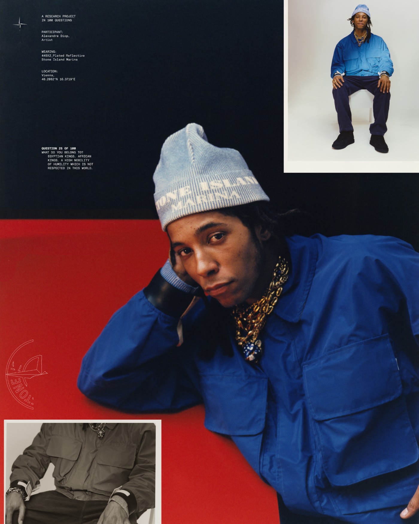 延续 Stone Island 于年初首次推出的标志性全新风格广告大片,艺术家 Alexandre Diop 身着 445X2 JACKET PLATED REFLECTIVE 出镜示范。