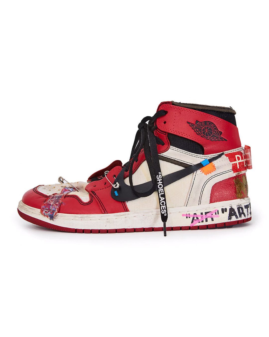 不过大家关注的重点一定是这双由 GD 本人操刀改造的「OFF-WHITE x Air Jordan1 芝加哥」。