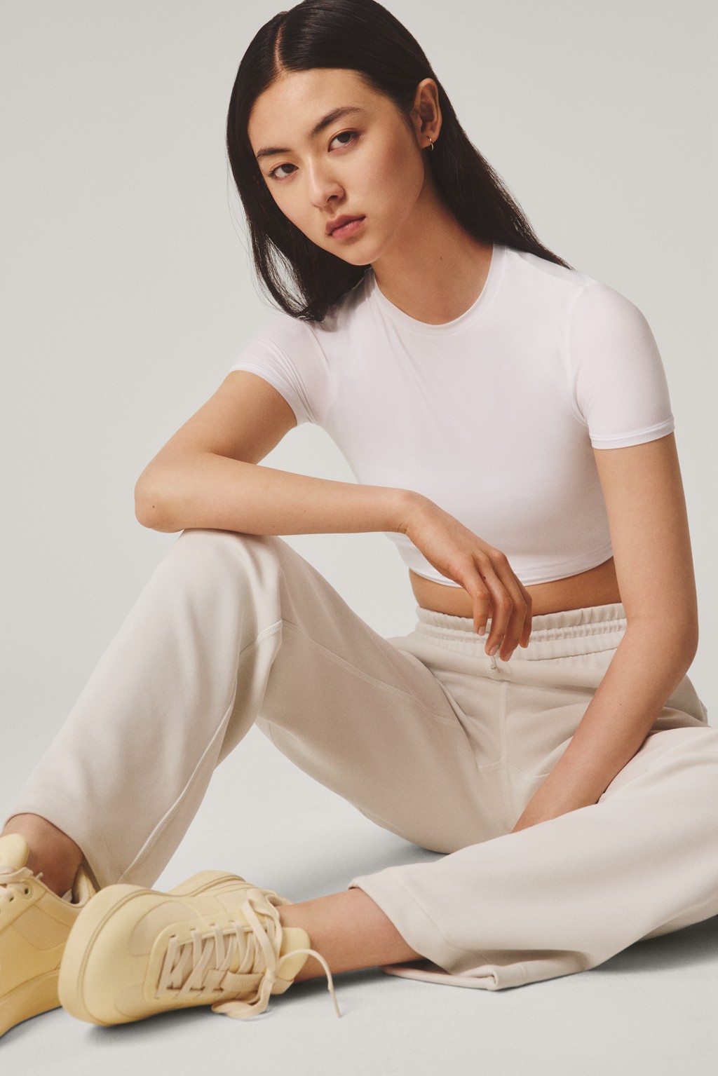 轻盈的平纹针织面料针织衫、收腿针织长裤,以及女生专属的 Softstreme™ 高腰长裤,演绎简约又不失高级的格调。