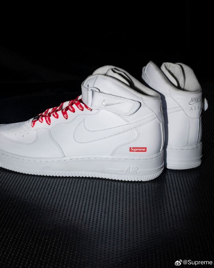 此前有消息称 Supreme 与 Nike 将以 Air Force 1 Mid 为蓝本带来两款配色。