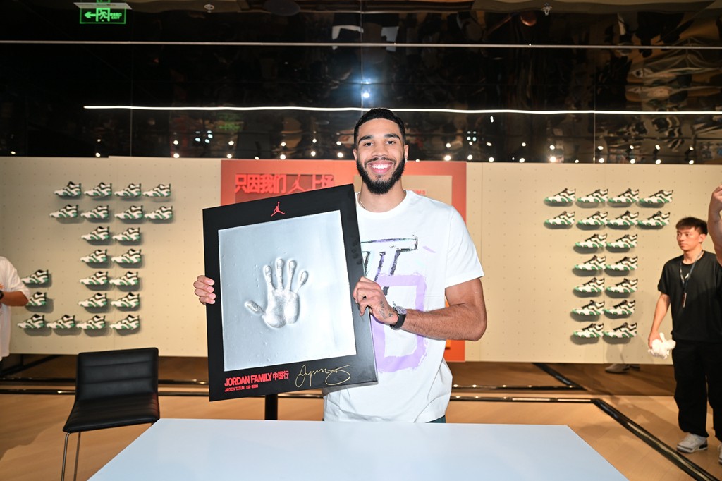 活动当天,塔图姆来到位于上海 IFC 的 Jordan 品牌旗舰店,现场已经有大量球迷穿着球衣等待自己的偶像。