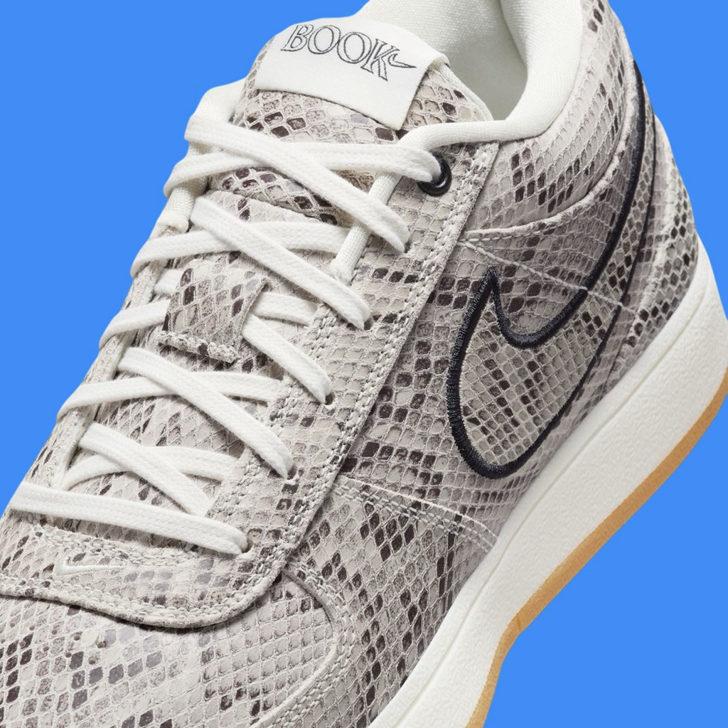 今年奥运会期间,布克曾亲穿一双蛇纹配色 Book 1 漫游巴黎街头,被不少媒体镜头记录了下来。 没想到才过去几周,这双鞋就迎来了市售的信息。 先看回鞋款,鞋面采用大量蛇纹覆盖,成为最大亮点。 白色中底搭配生胶外底营造复古氛围。 据悉,全新 Nike Book 1 “Python” 将于 9 月 12 日正式登场,你能给这双打几分呢?