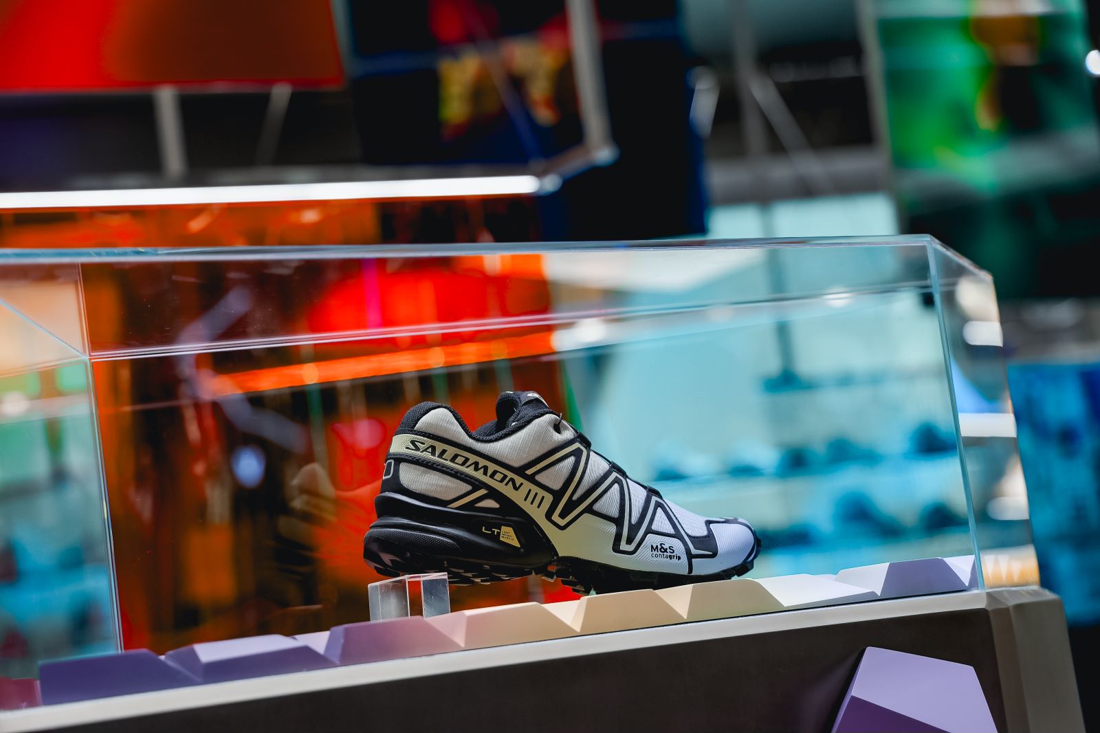 特别是店内展示的 contaGRIP 高抓地力外底的耳齿设计,更是让人一眼就能感受到 Salomon 产品的科技性能。
