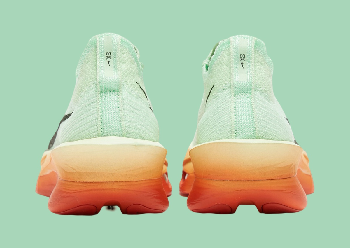 淡绿色鞋身辅以渐变色调大底营造,有种基普乔格在土地跑道训练的即视感,而后跟注入基普乔格的手写签名则彰显配色的特殊身份。