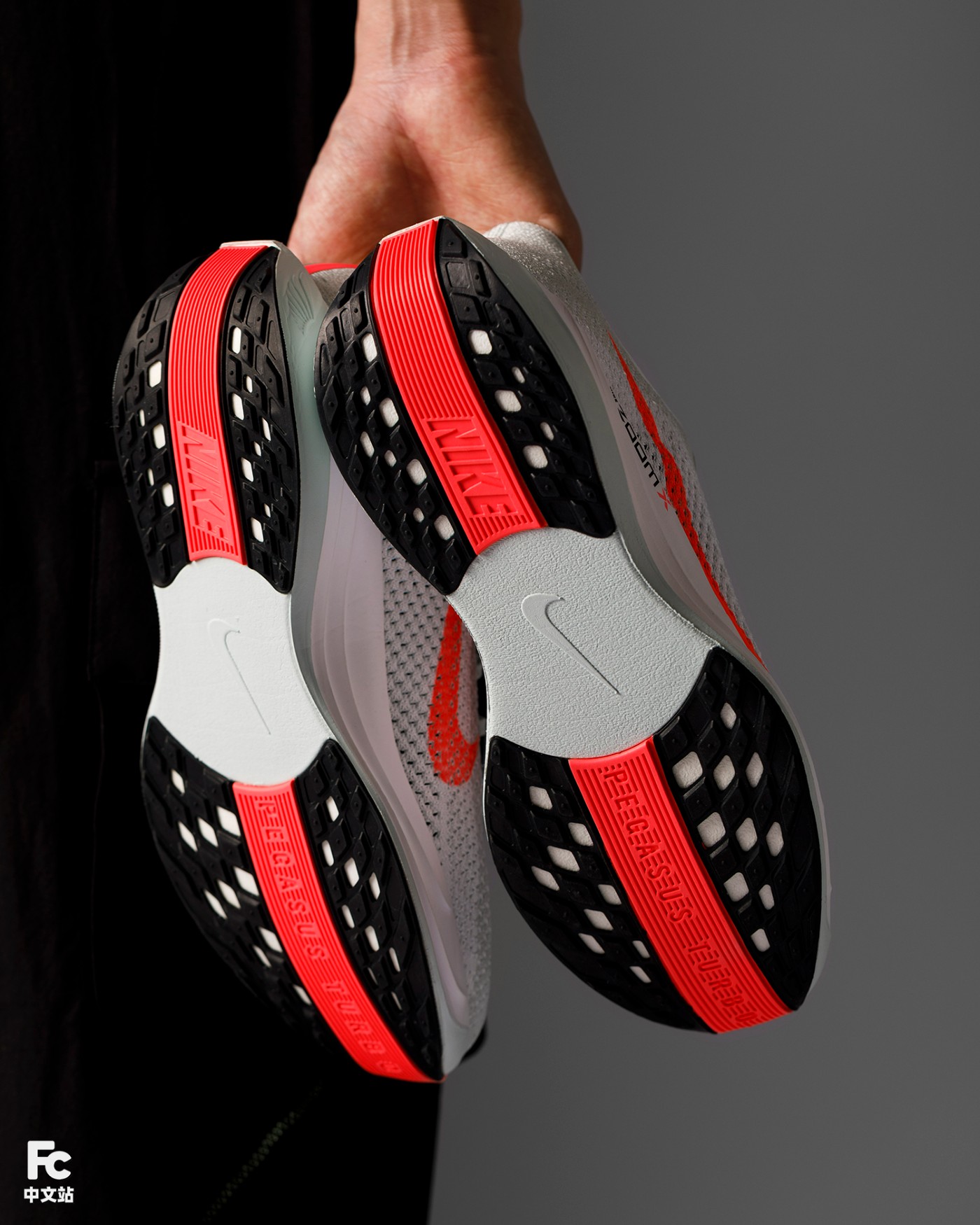 多纹路的橡胶大底保证抓地表现,中足位置特意将 ZoomX 泡棉裸露出来,一定程度减轻重量。