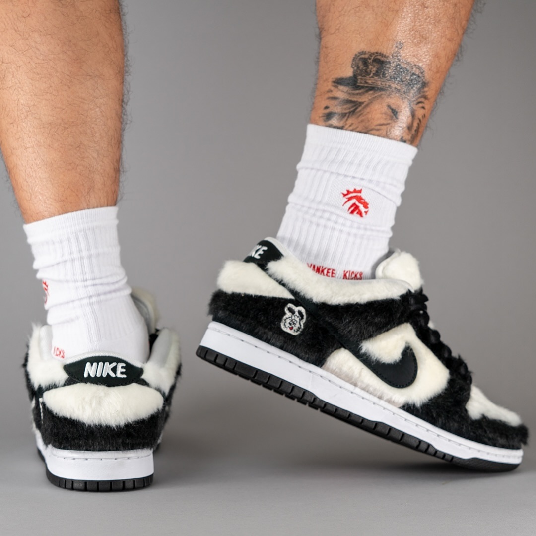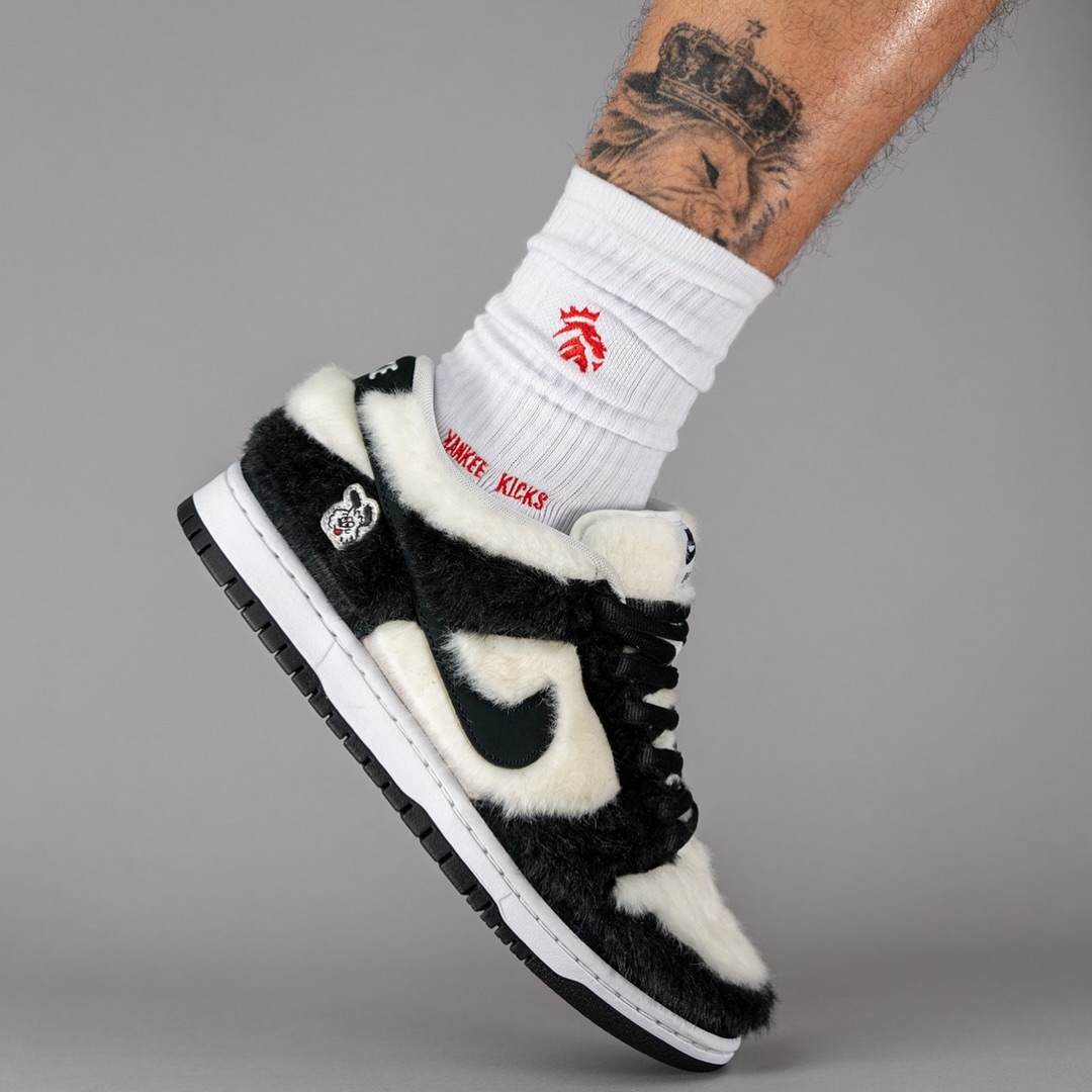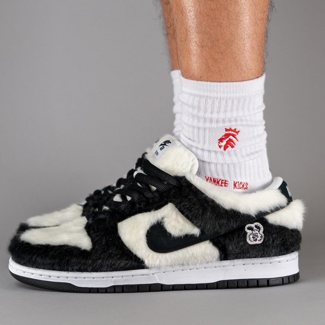 目前一组上脚效果流出,熟悉的熊猫装扮加之独特的毛绒质感,还原 Vick 最初在画稿的形象。