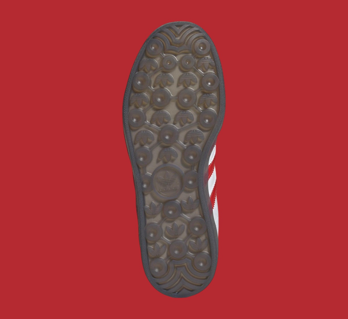 以白色为主调,红色点缀的鞋面,整体观感兼顾辨识度与百搭属性,材质上依然是大面积光滑皮革搭配麂皮呈现。