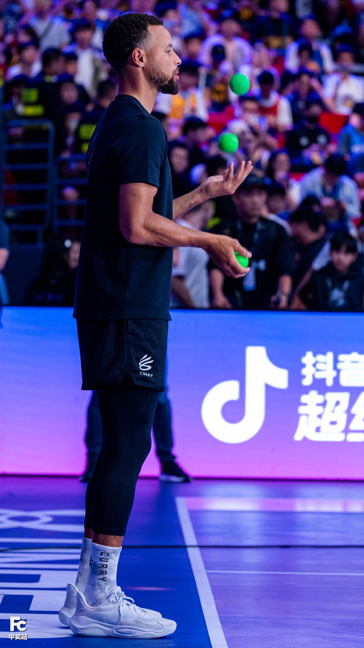 不过库里也都想法儿,通过活动前训练和看比赛忍不住手痒痒这样的方式,为我们展示了他的技艺。