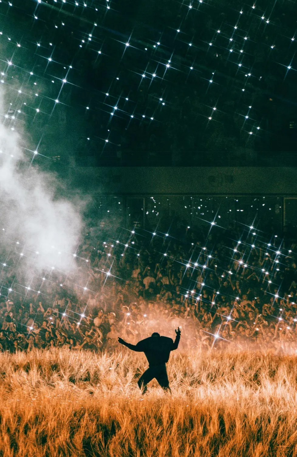 回顾刚刚结束的第一场演出,侃爷身穿印有 “告诉过你” 卫衣,晚上 8 点一过就准时出现,几乎没迟到。
